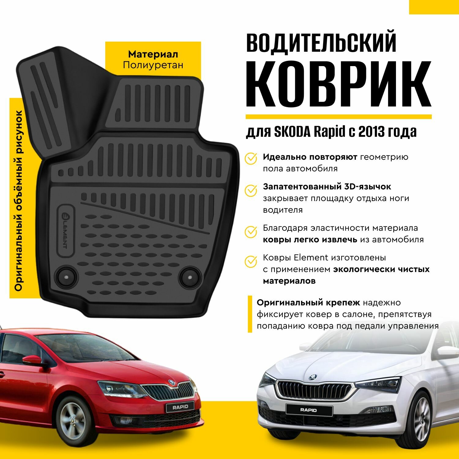 СохранитьКоврик водительский 3D в салон SKODA Rapid, 2013-2020, 2020-, 1 шт. (полиуретан) / Шкода Рапид интересное: