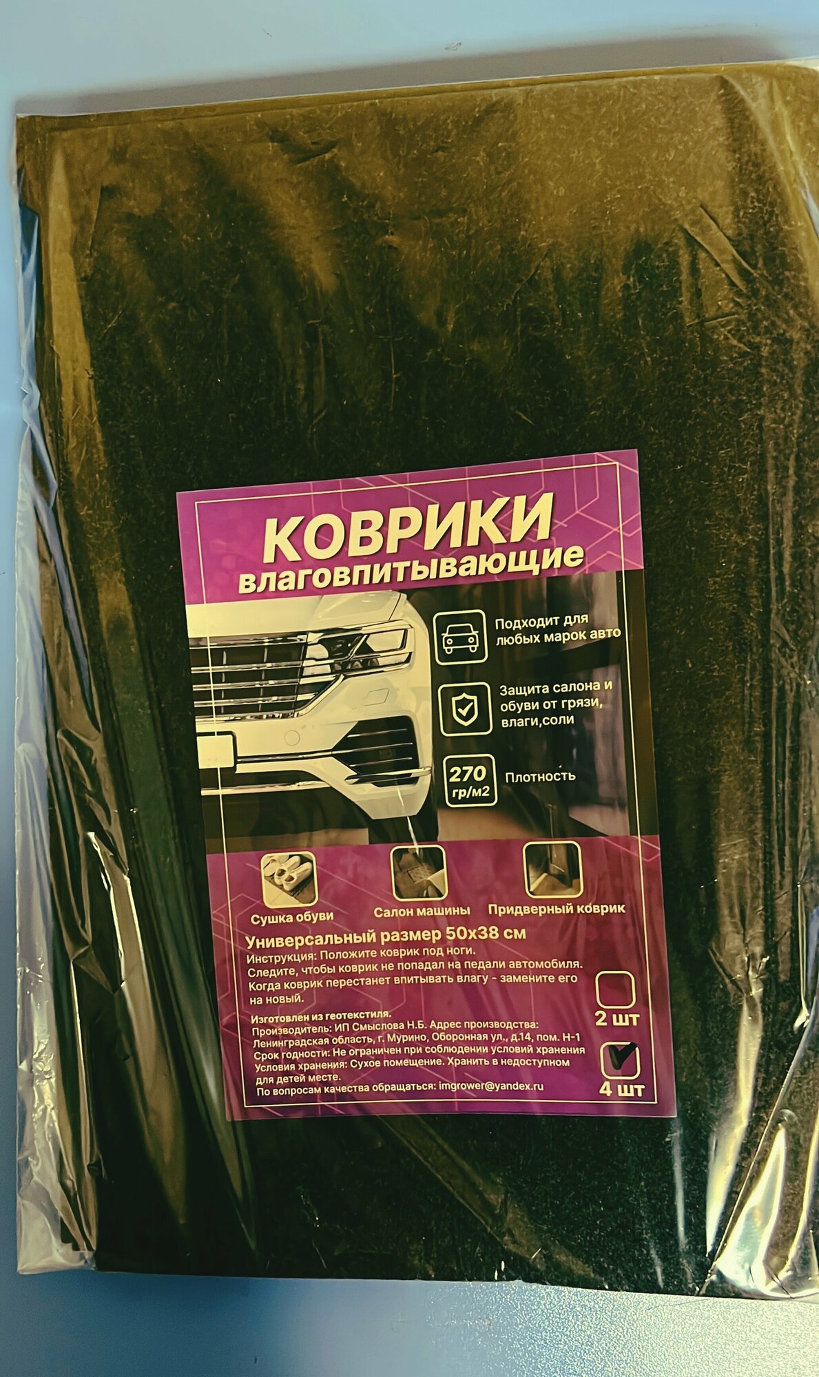 Коврики для авто, влаговпитывающие, универсальные 4 штуки, 38см x 50см интересное: