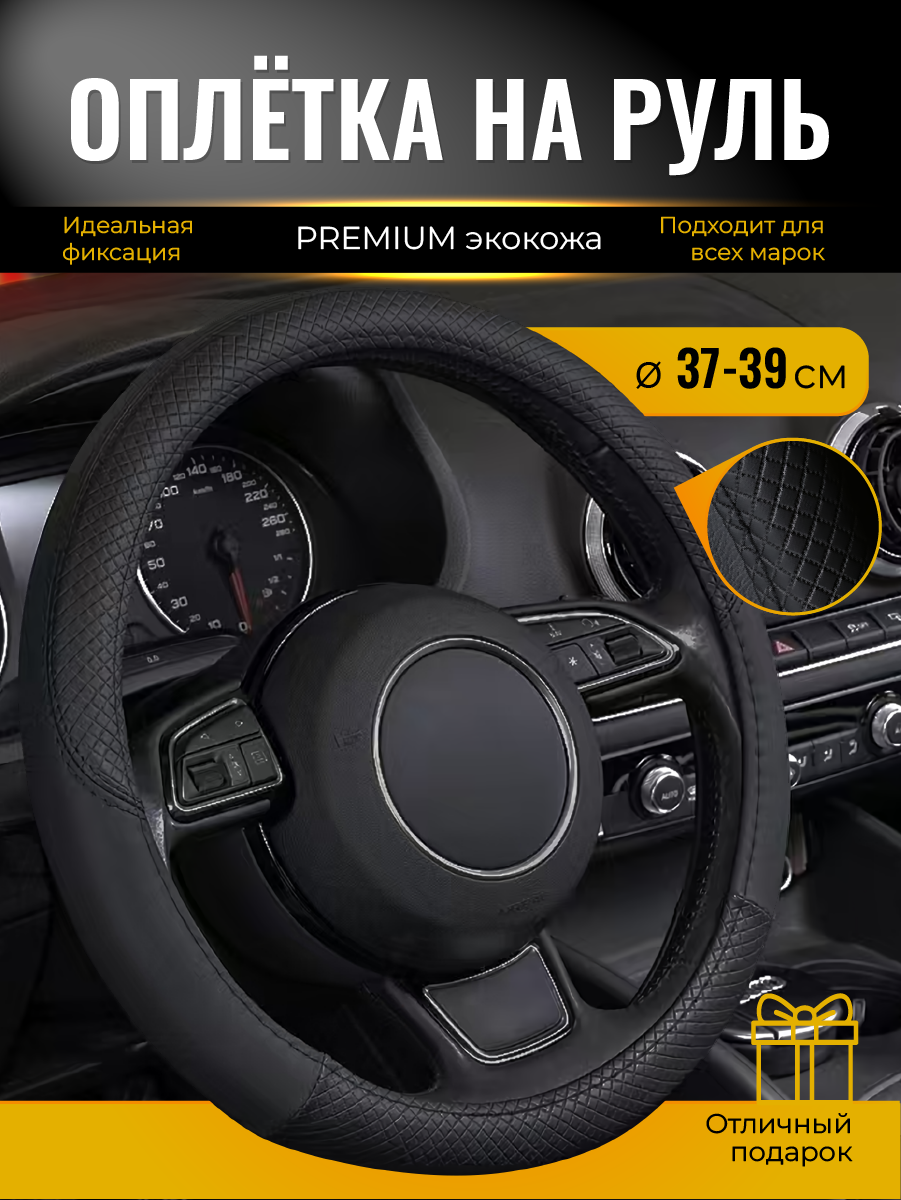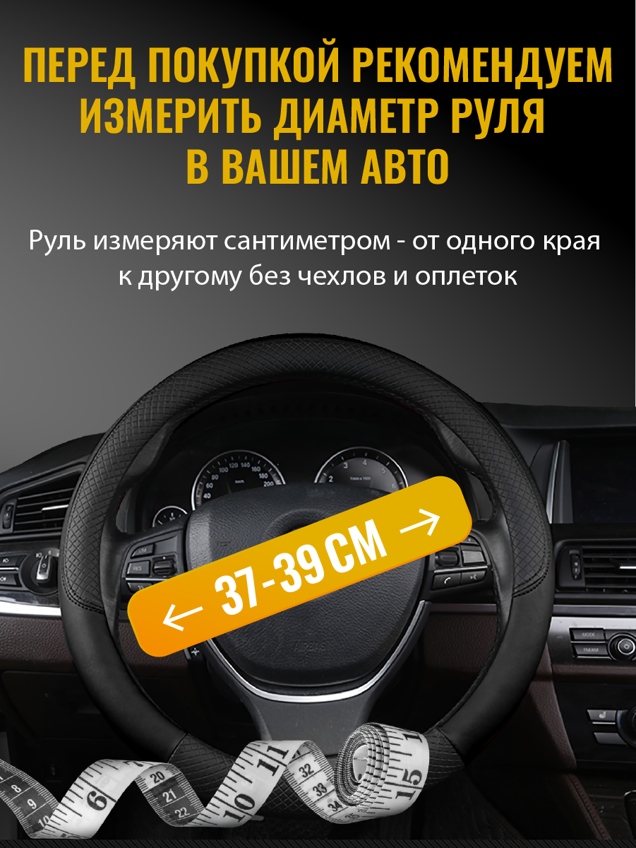 Оплетка на руль WELHOME универсальная 37-39см, черный