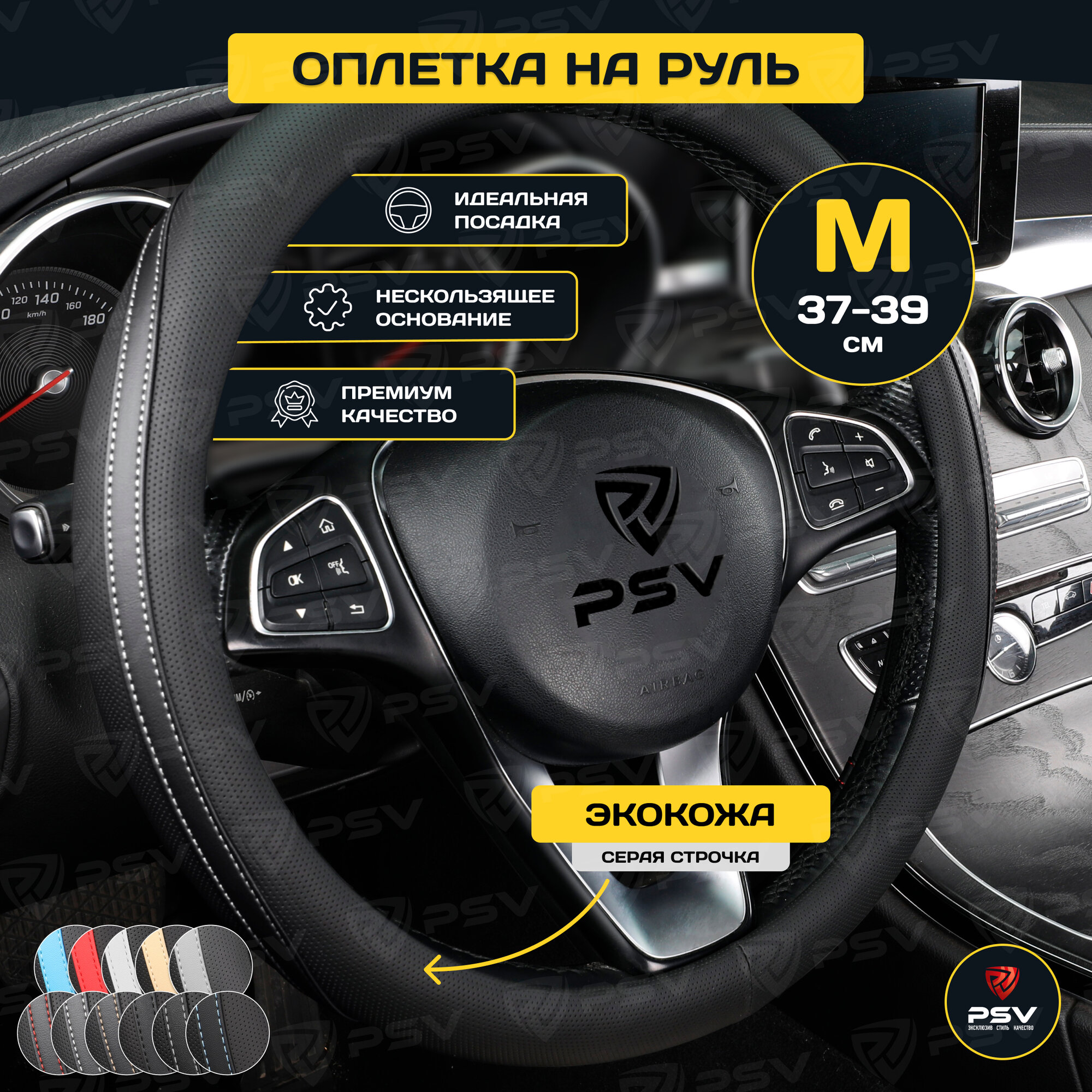 Оплетка чехол на руль PSV TERMIT (Черный с серой строчкой) M 37-39 см, экокожа, 136853