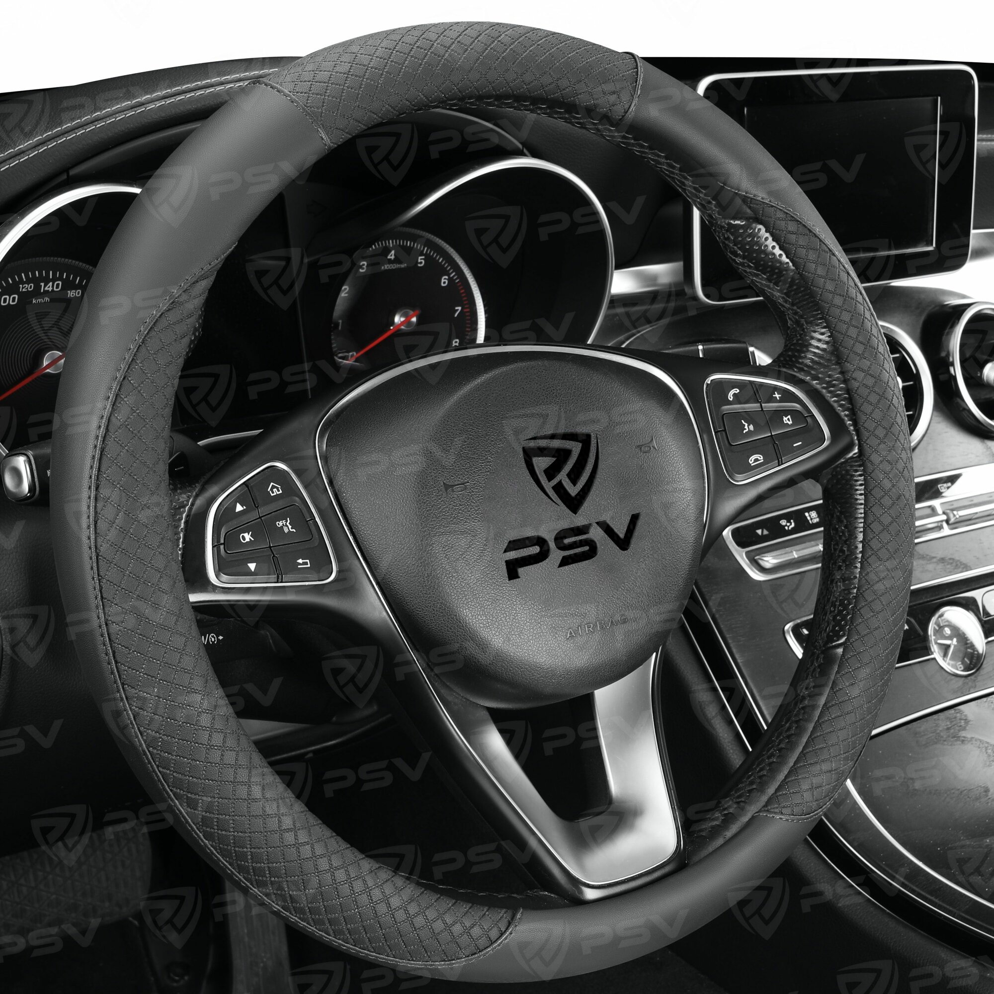 Оплетка чехол на руль PSV GREAT (Черный, строчка серая) M 37-39 см, экокожа, 136825