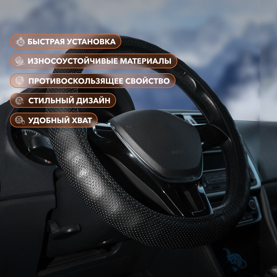 Оплётка руля Airline AWC-RS-13M Перфорированная искусственная кожа черный M интересное: