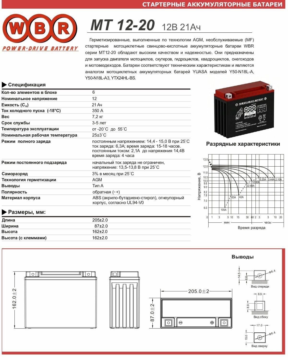 "MT 12-20 Аккумулятор для мототехники WBR, полярность: обратная (- +) (12V | 24Ah | 350A)" интересное: