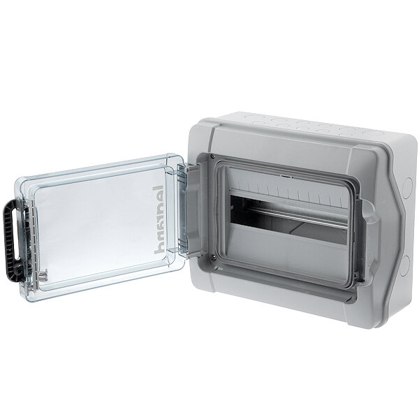 Бокс (щиток) на 12 автоматов 1 ряд пластиковый наружный IP65 прозрачная дверь с шинами N и PE Plexo3 (Legrand), арт. 601981