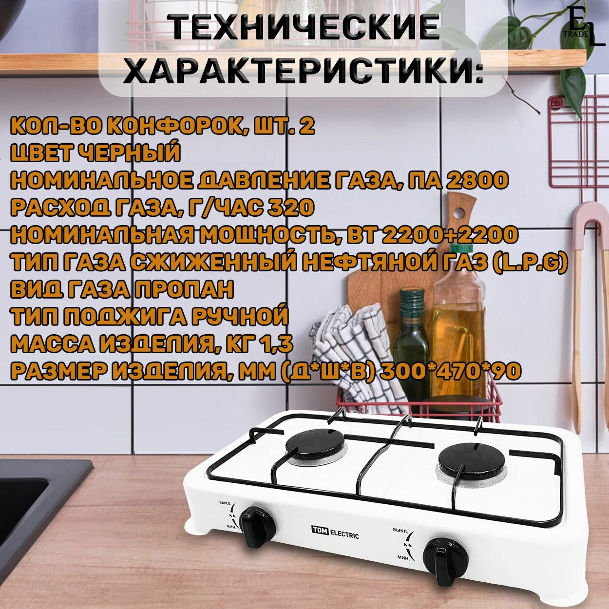 Плитка газовая двухконфорочная, ГП-2, белая, TDM