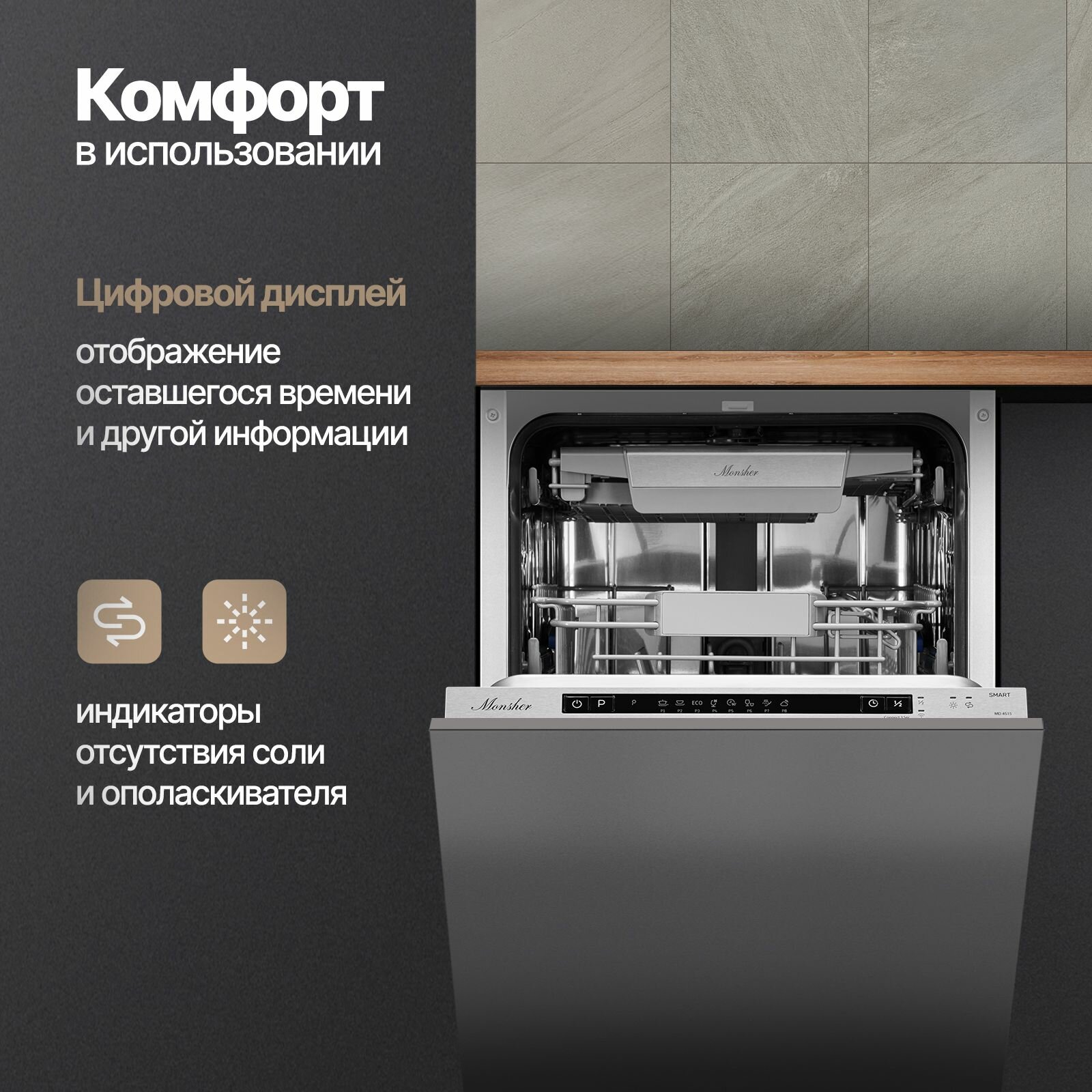 Посудомоечная машина Monsher MD4515 Smart интересное: