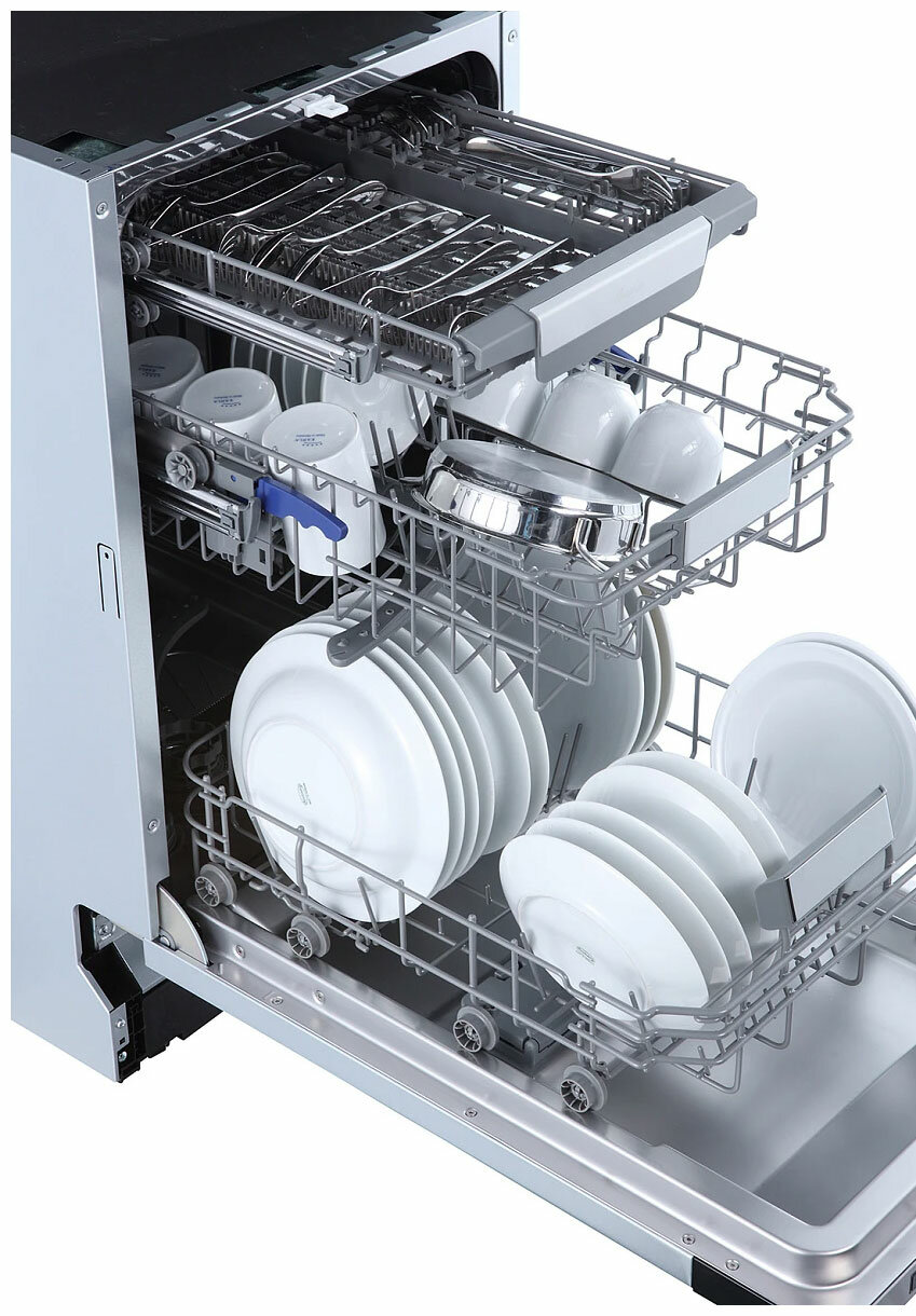 | Дополнительная информация | КОМПЛЕКТАЦИЯ: Воронка для соли, Монтажный комплект, Шланг заливной/сливной, Длина сетевого шнура -150 см, Цвет LED-дисплея белый, Полка для чашек, Складные держатели тарелок, Съемные разбрызгиватели, Фильтр тонкой и грубой очистки Самодиагностика неисправностей, Допустимый вес фасада 3,5-5 кг, Размер ниши для встраивания (ВхШхГ) 820х450х580 мм |
