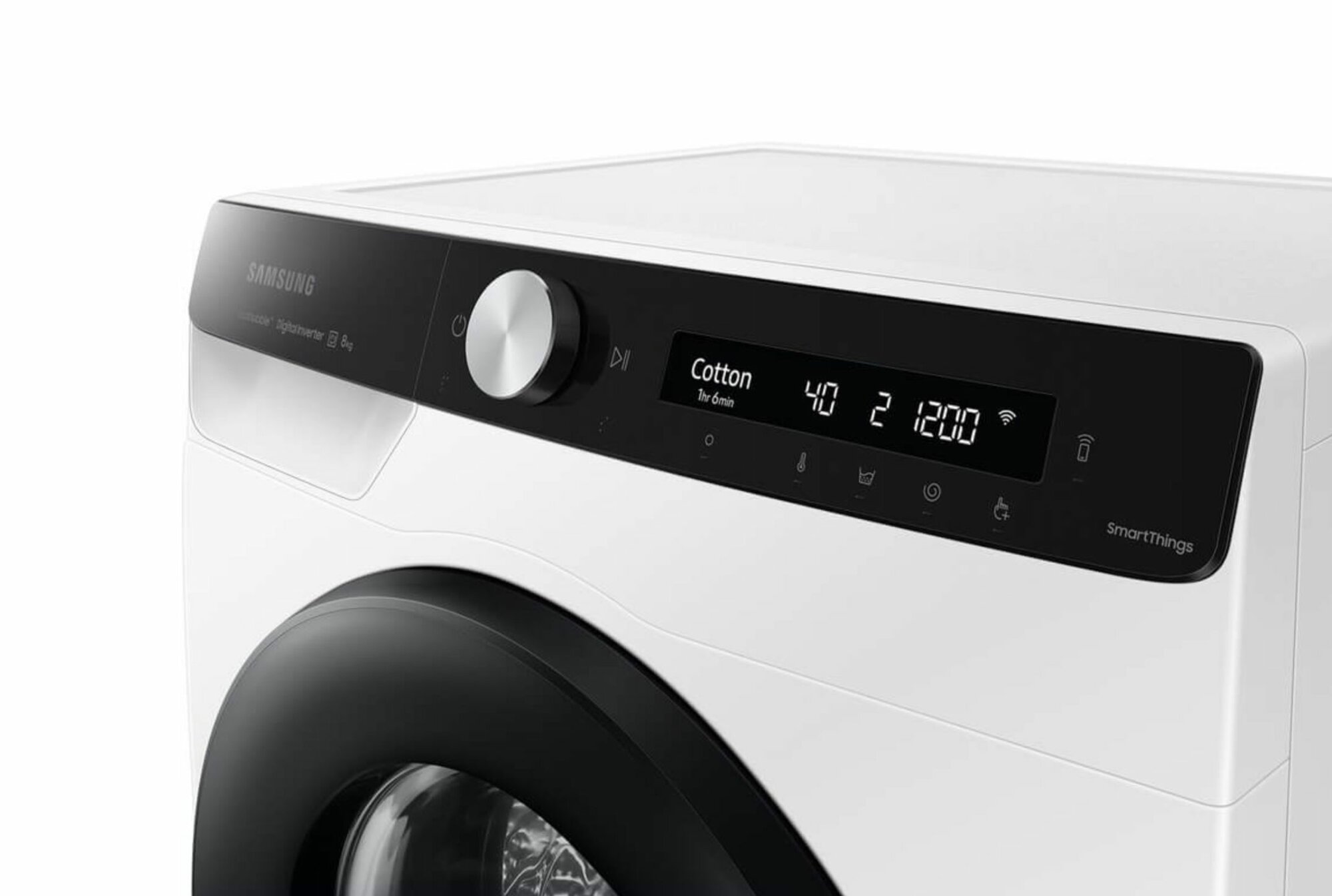Узкая стиральная машина Samsung WW70AG6S23ATLP, 7 кг, с электронным управлением, инверторным мотором, обработкой паром, технологией Eco Bubble, белая/черная