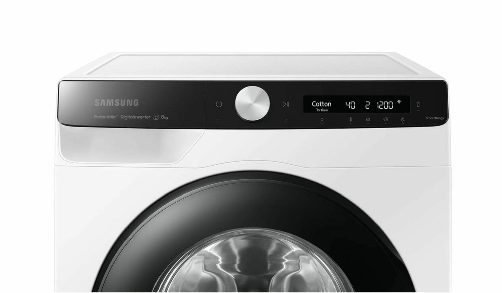 Узкая стиральная машина Samsung WW70AG5S21CELP, 7 кг, с электронным управлением, инверторным мотором, обработкой паром, технологией Eco Bubble, белая / черная