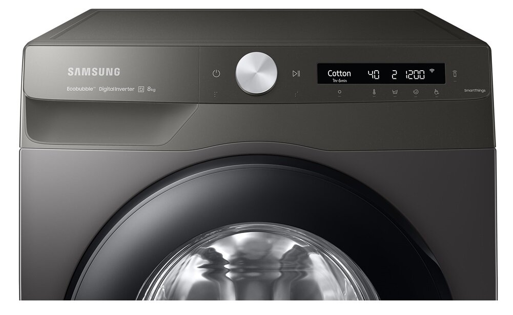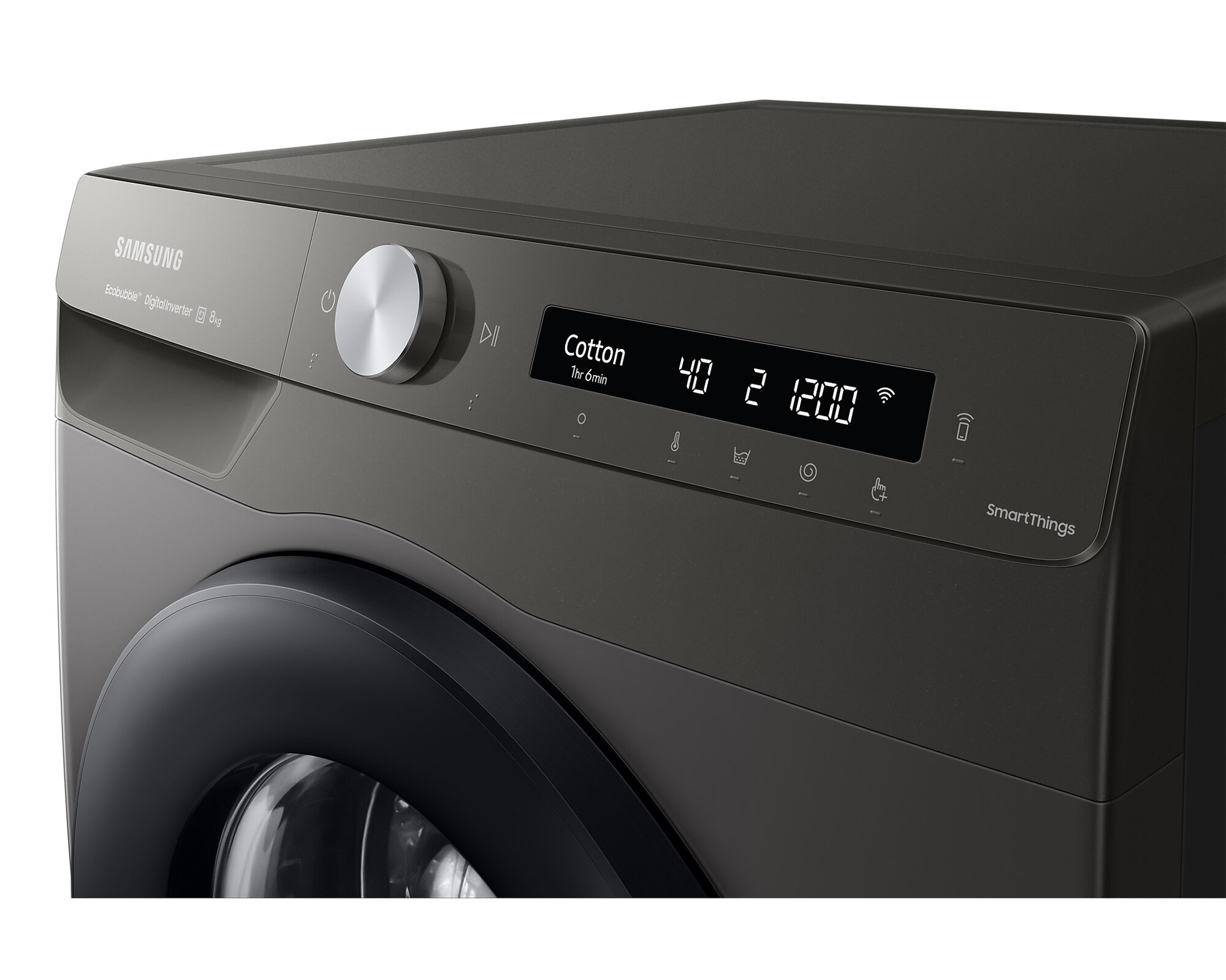 Узкая стиральная машина Samsung WW80AGAS21AXLP, 8 кг, с электронным управлением, инверторным мотором, технологией Eco Bubble, графит / черный