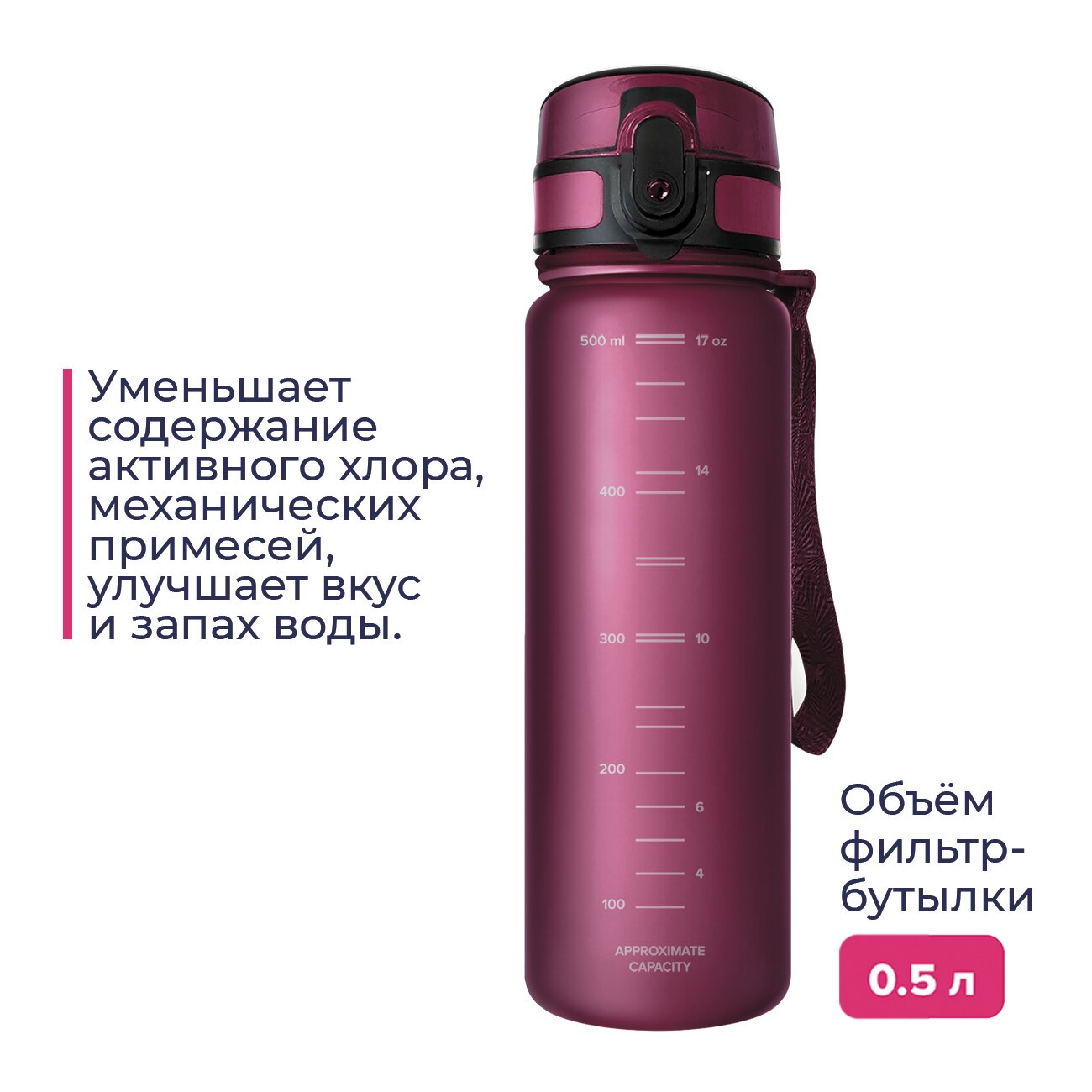 Бутылка для воды Аквафор Сити 500мл рубиновая (511431) интересное:
