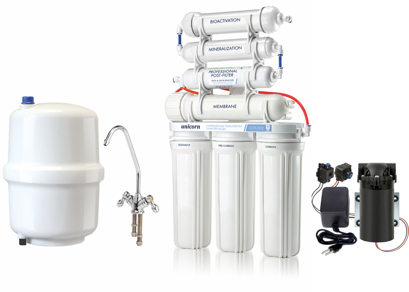 Обратноосмотическая система с помповым блоком UNICORN (FRO-7Р) новинка интересное:
