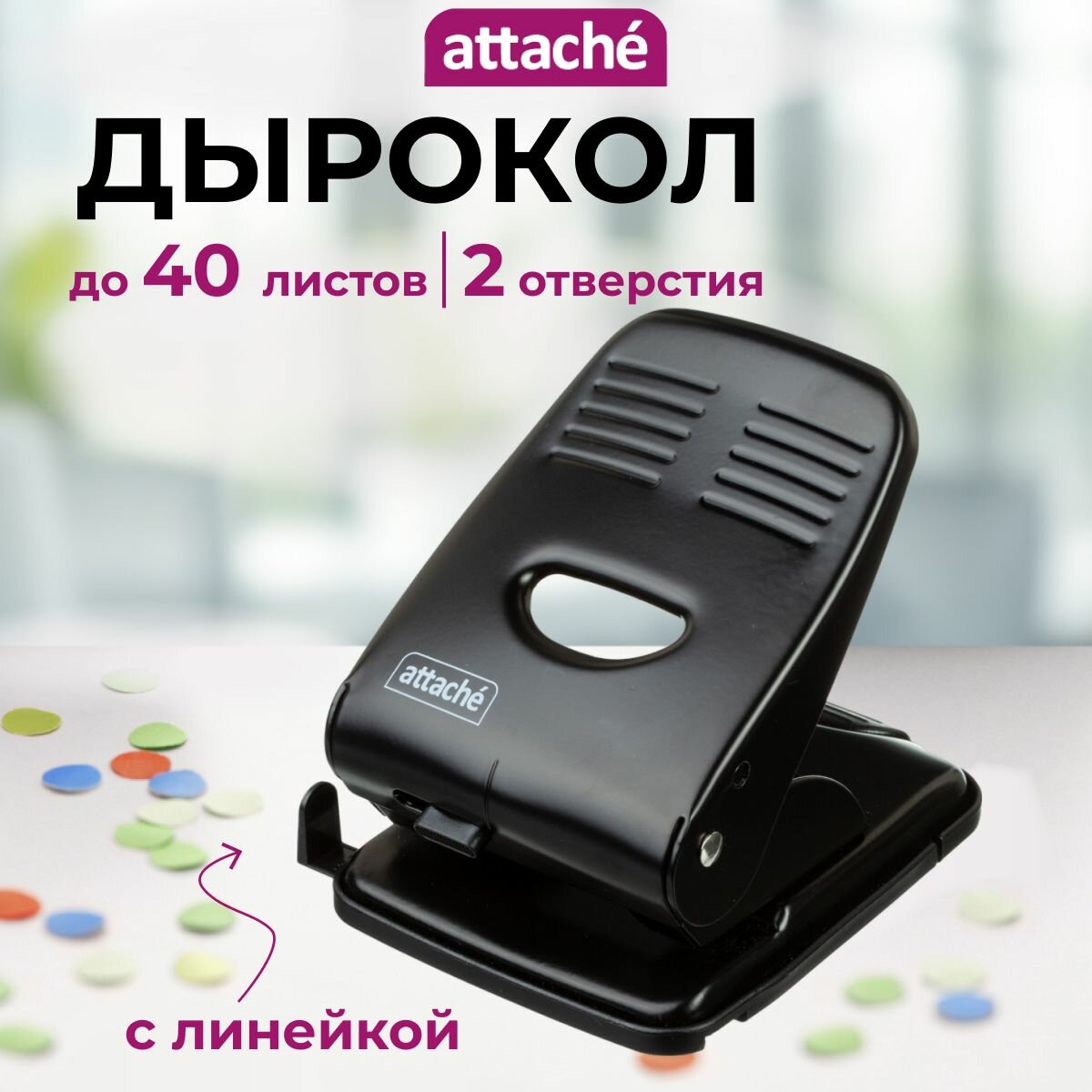 Дырокол Attache, до 40 листов, линейка, черный интересное: