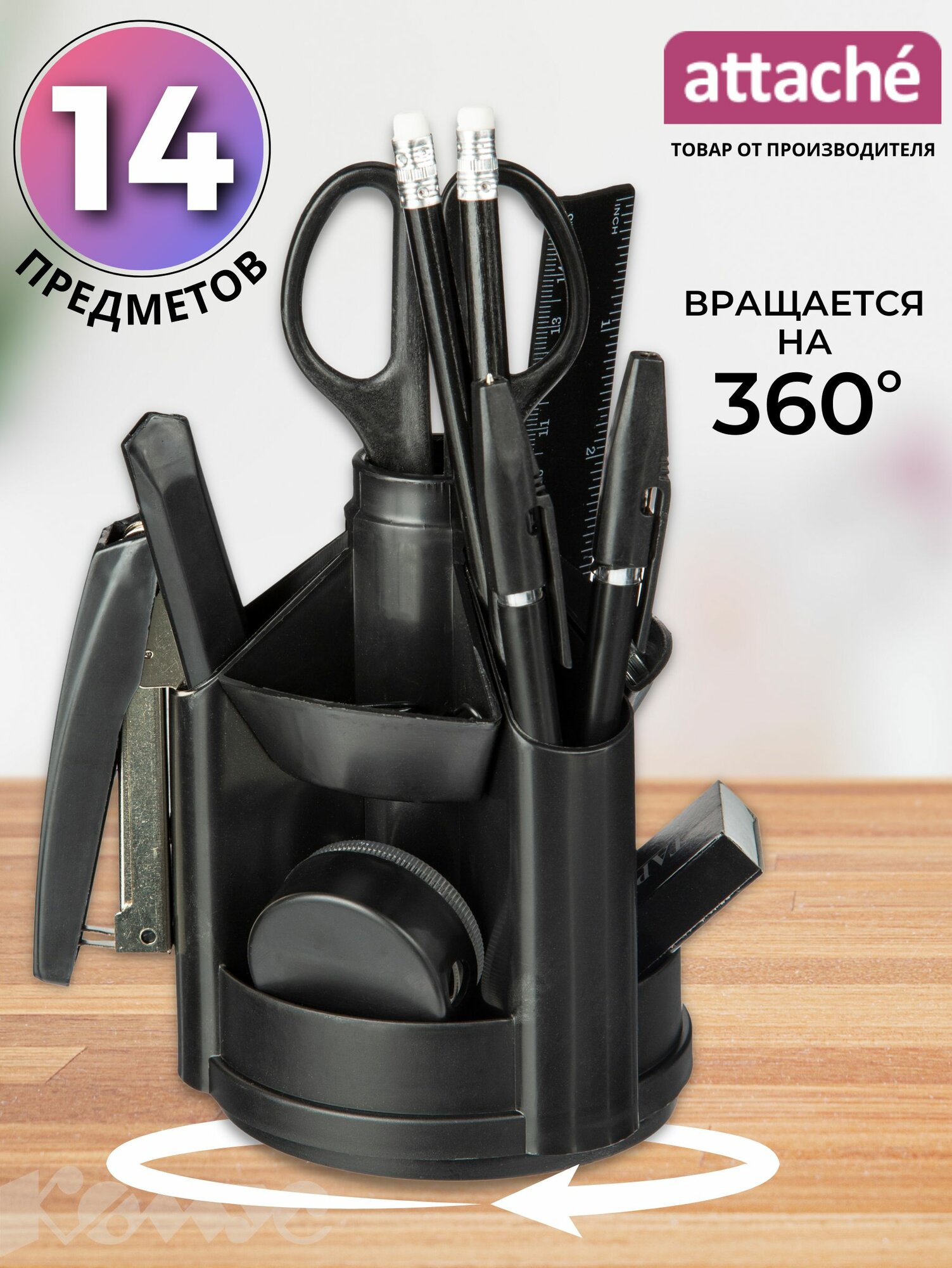 Набор канцелярский Attache пластиковый 14 предметов черный вращающийся