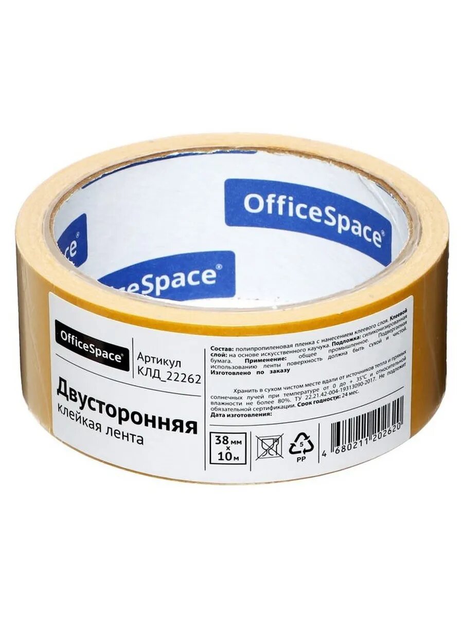 Клейкая лента двусторонняя 38мм*10м OfficeSpace, полипропилен 269645 4345642 интересное: