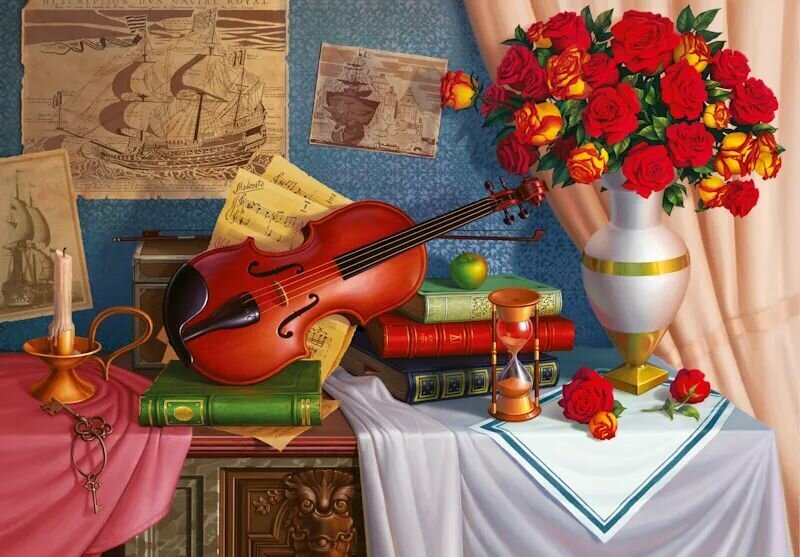*Puz 1000д._2в1 РыжийКот Цветочные натюрморты [500+500дет.] (ХП500-4313) интересное:
