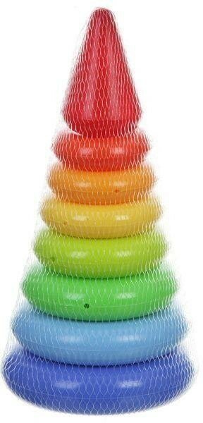 Пирамида Малая (23см, с кольцами, 8 деталей, пластик, в сетке, от 1 года) 9223, (Рославльская игрушка)