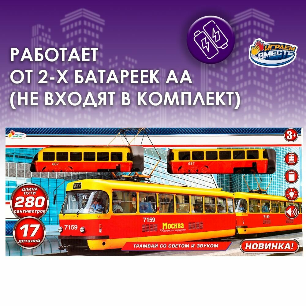 Купить Железная дорога детская Трамвай со светом и звуком на батарейках Играем вместе / игрушечный поезд 280см