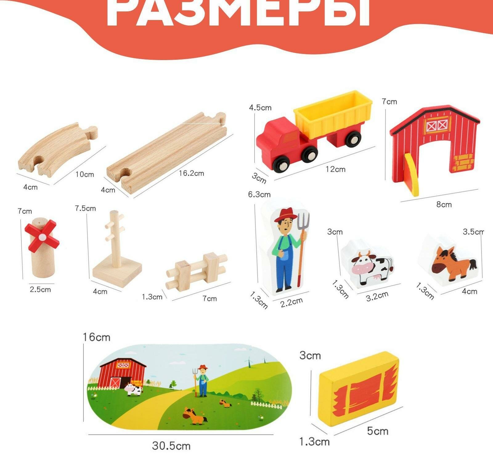 Железная дорога с фермой, 23 детали, 32х5х17 см (5295988) интересное: