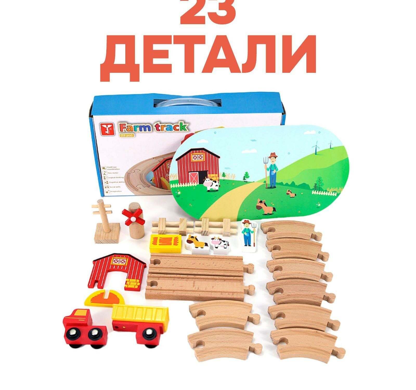 Деревянная игрушка Железная дорога + ферма 23 детали, 32?5?17 см 5295988 .