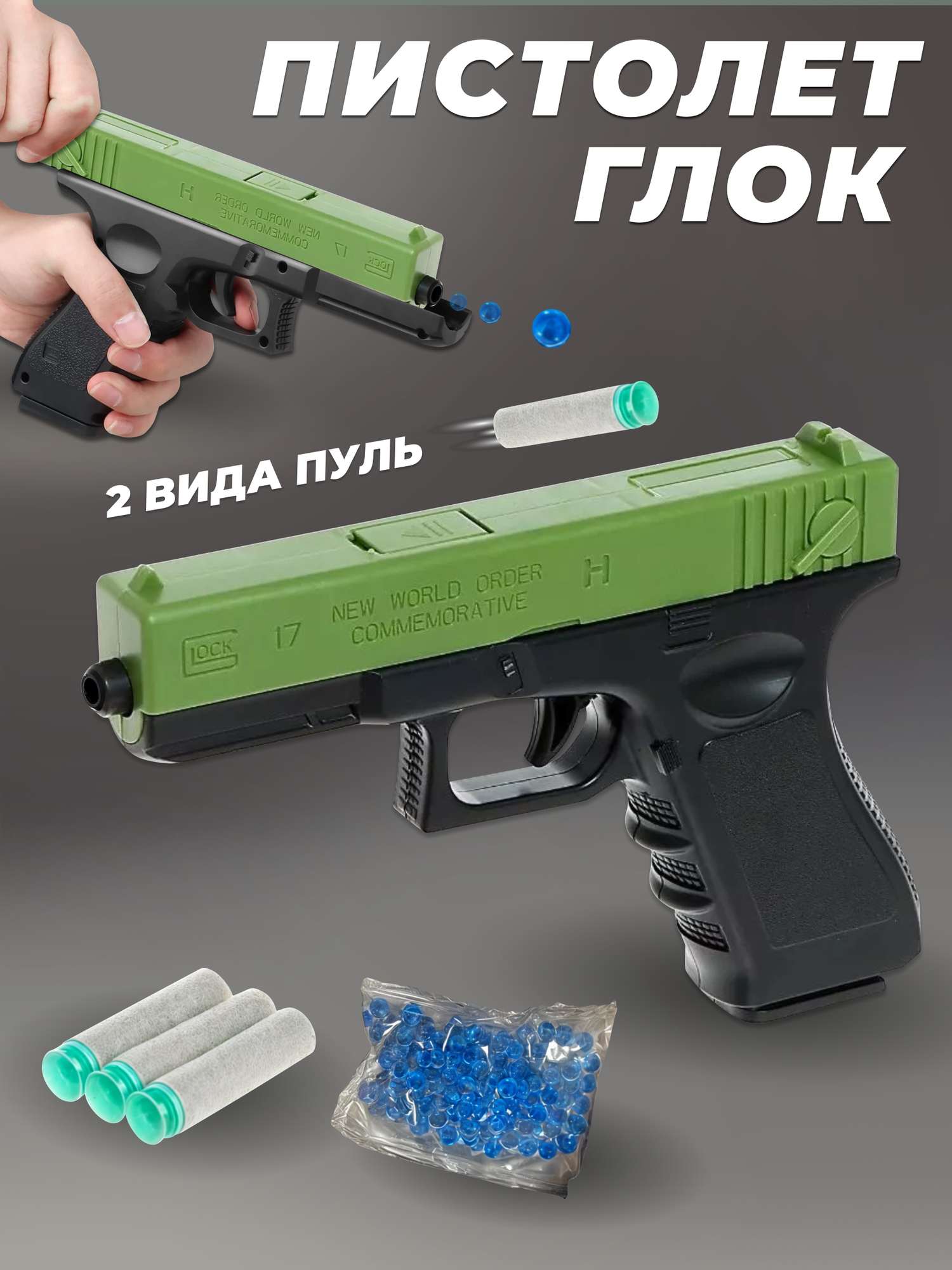 Ниже Вы можете прочитать отзывы на Игрушечное оружие пистолет Глок 20,5 см с гидрогелевыми шариками и 3 мягкими пулями с присосками для мальчиков, ознакомится с подробными характеристиками, посмотреть интересные обзоры и фотографии на Игрушечное оружие пистолет Глок 20,5 см с гидрогелевыми шариками и 3 мягкими пулями с присосками для мальчиков.