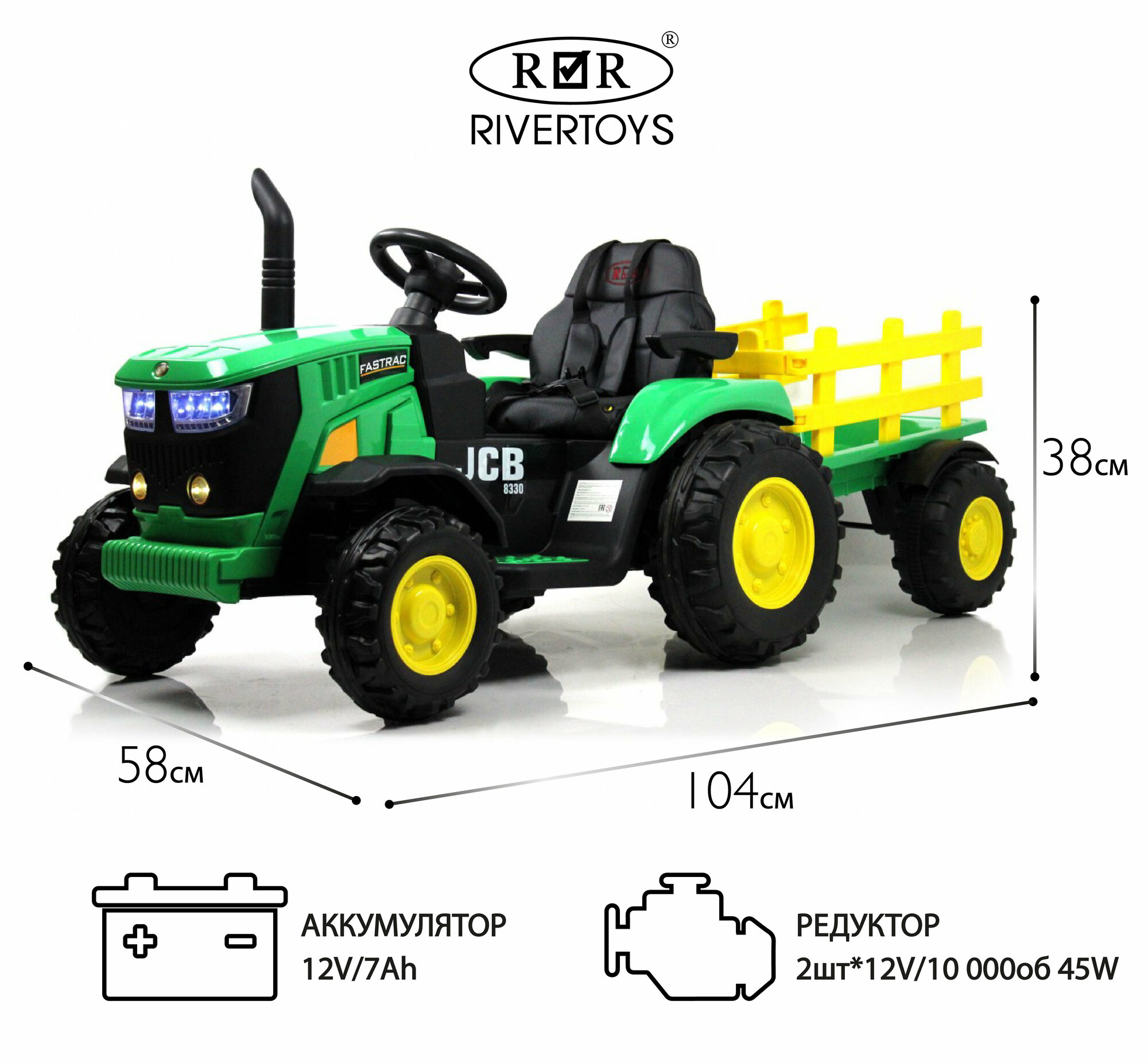 | Комплектация | Электромобиль; Прицеп; Пульт управления; Зарядное устройство; Инструкция; Гарантийный талон. |