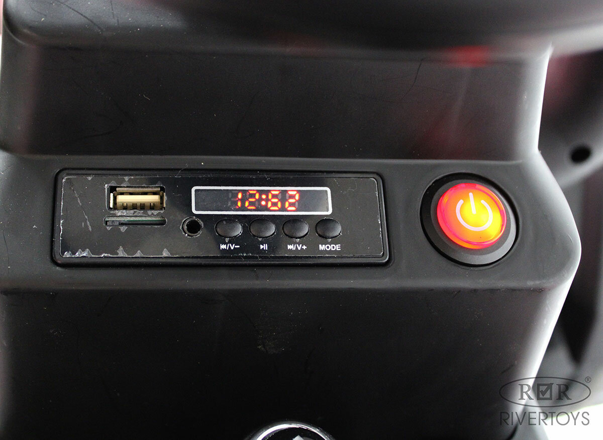 | Дополнительная информация | "Подсветка передних фар; Музыкальный руль (звук клаксона ); Поворотный руль; Система мультимедиа, оснащенная USB-входом и SD-входом; Ремень безопасности; Индикатор заряда батареи." |
