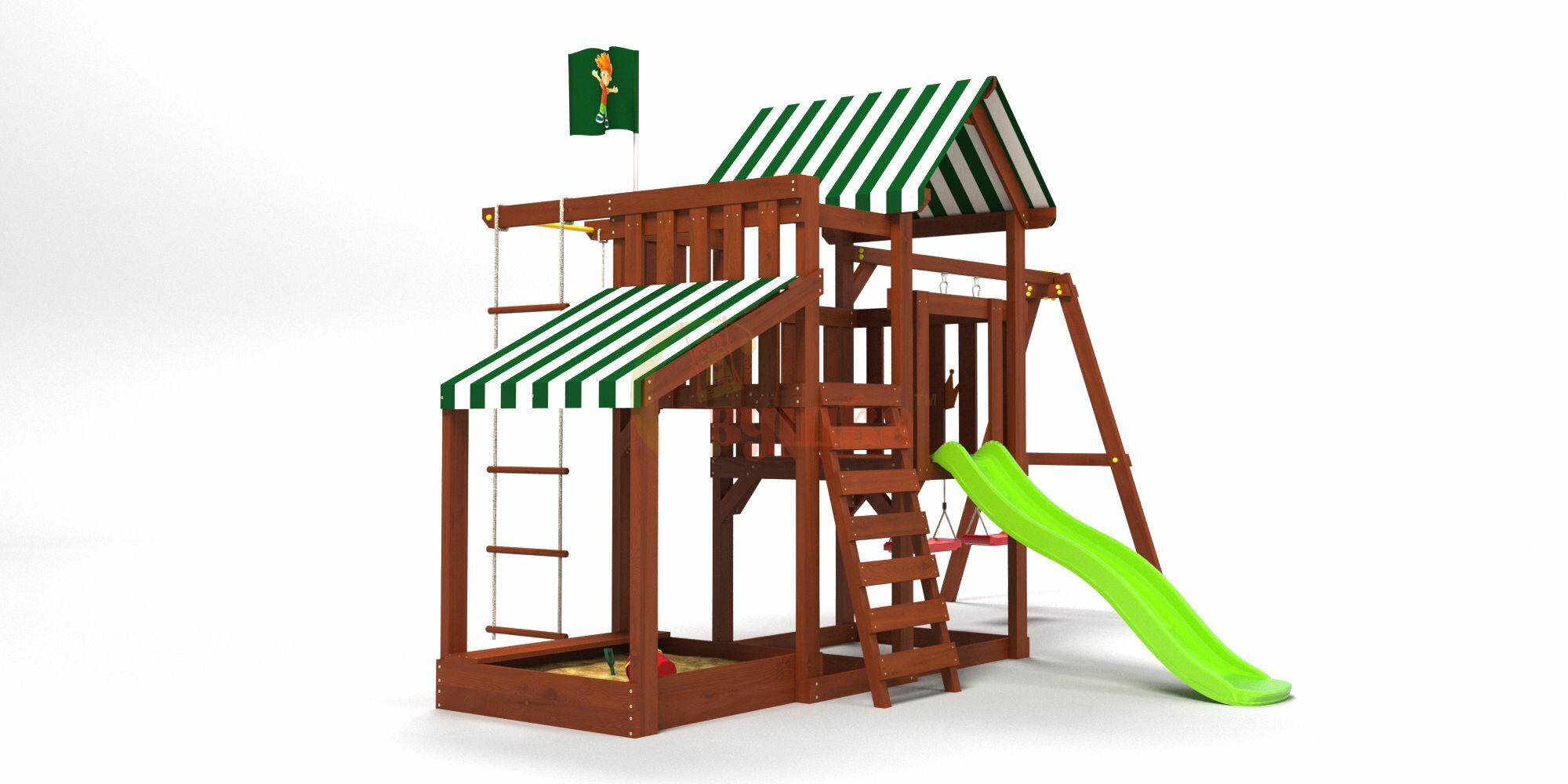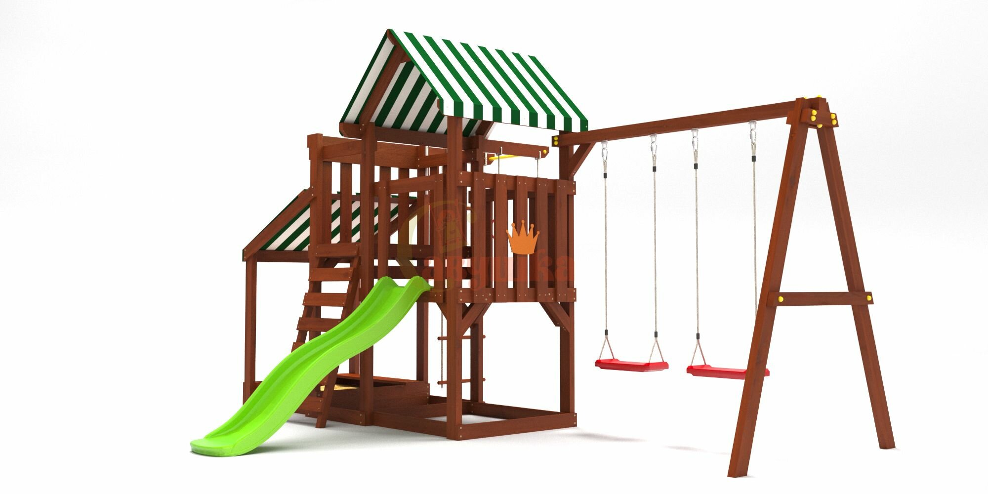 | В комплекте | гимнастические кольца, горка, домик, качели, лестница, песочница, турник |