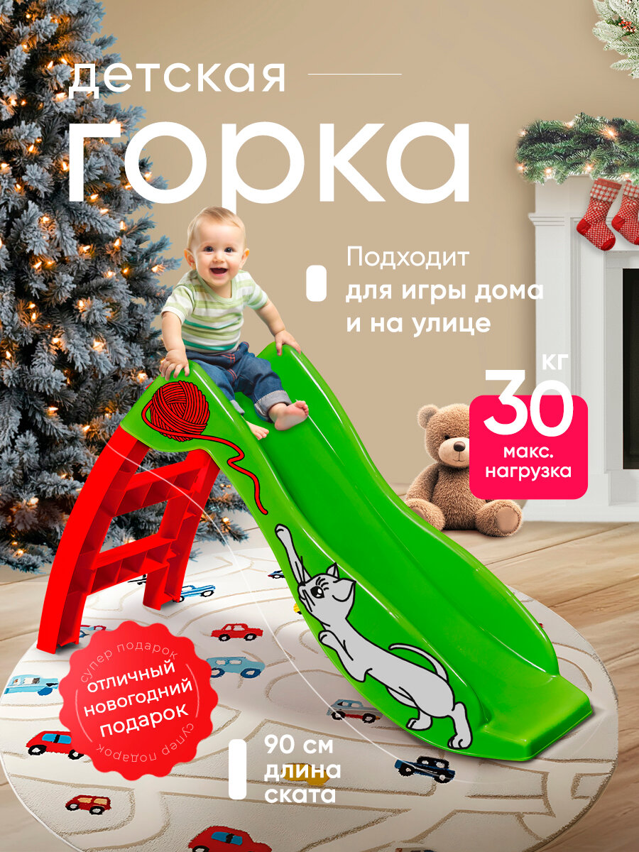 Купить Игровая горка "Котенок с клубком" зеленый/красный)