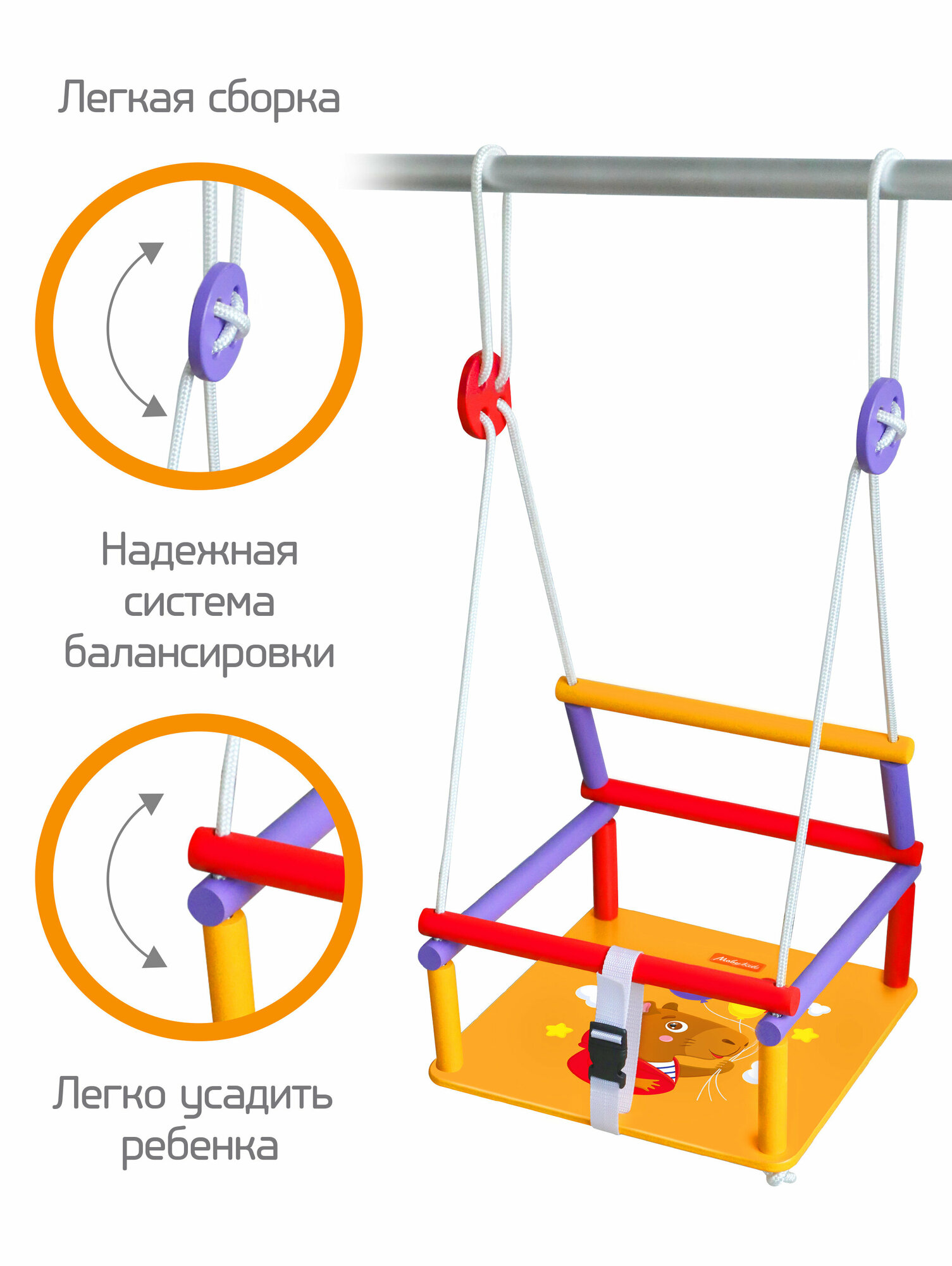 Качели "Полет" для детей от 3 до 7 лет, деревянные, Moby Kids