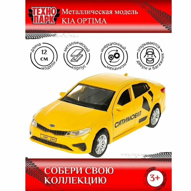 Купить Машинка детская KIA Optima Такси Ситимобил 12 см, Технопарк, желтая, открываются двери и багажник, металлический корпус