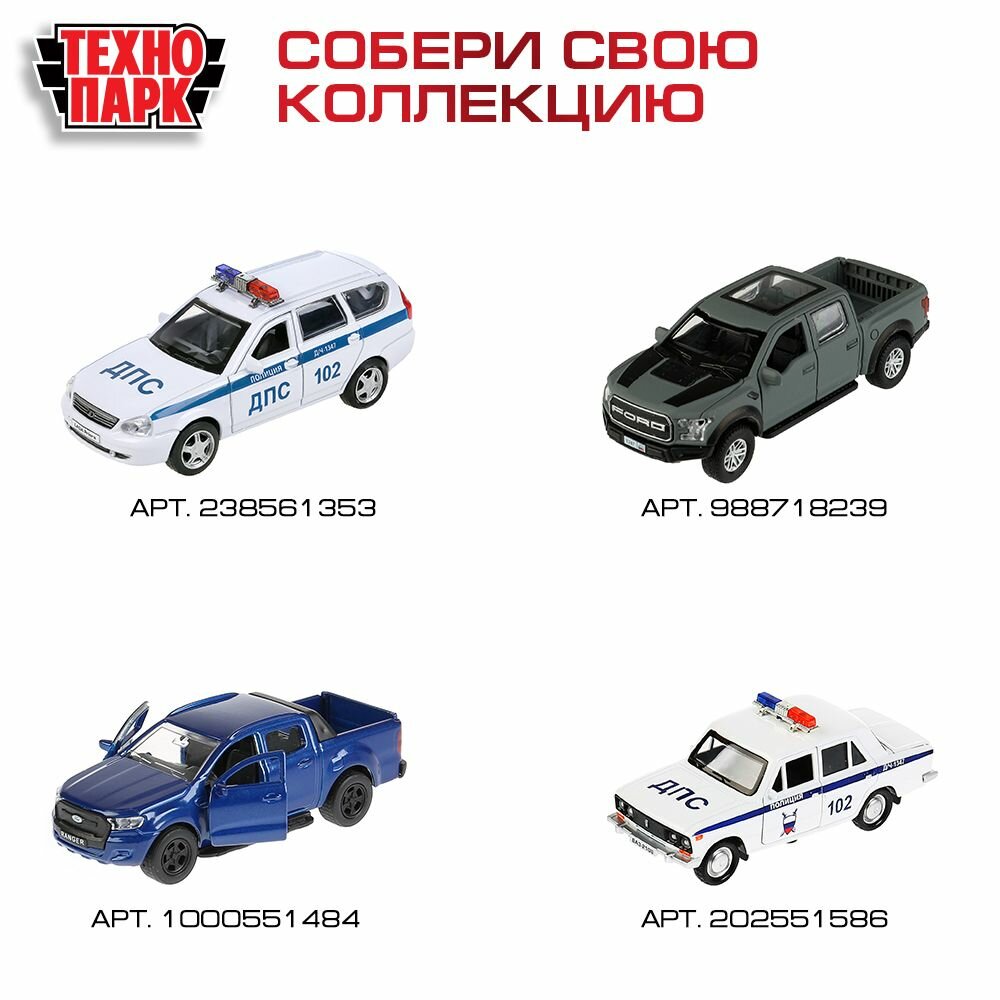 Машина металл FORD ranger пикап пожар., 12 см, дв., багаж., инерц., кор. Технопарк в кор.2*24шт