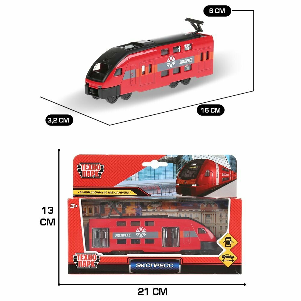 Купить Машинка детская поезд Экспресс 16 см, Технопарк, красный, металлический корпус, открываются двери