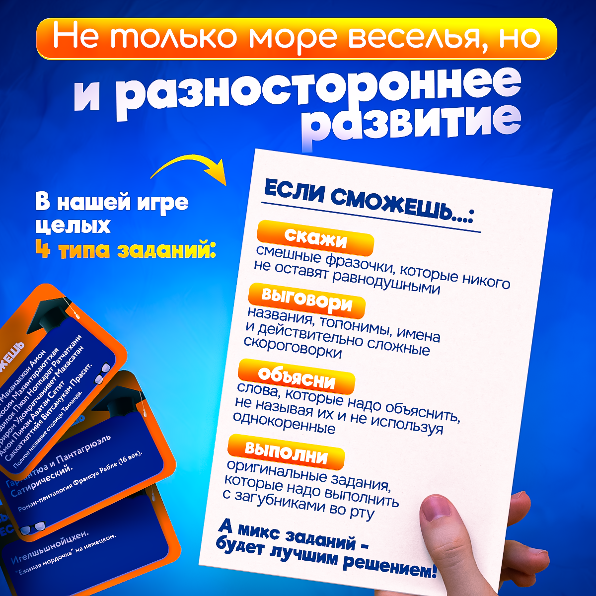 | Тип игры | ассоциативная / викторина / для вечеринки / карточная / квест / кооперативная / логическая / психологическая / развивающая / ролевая / семейная / стратегическая |
