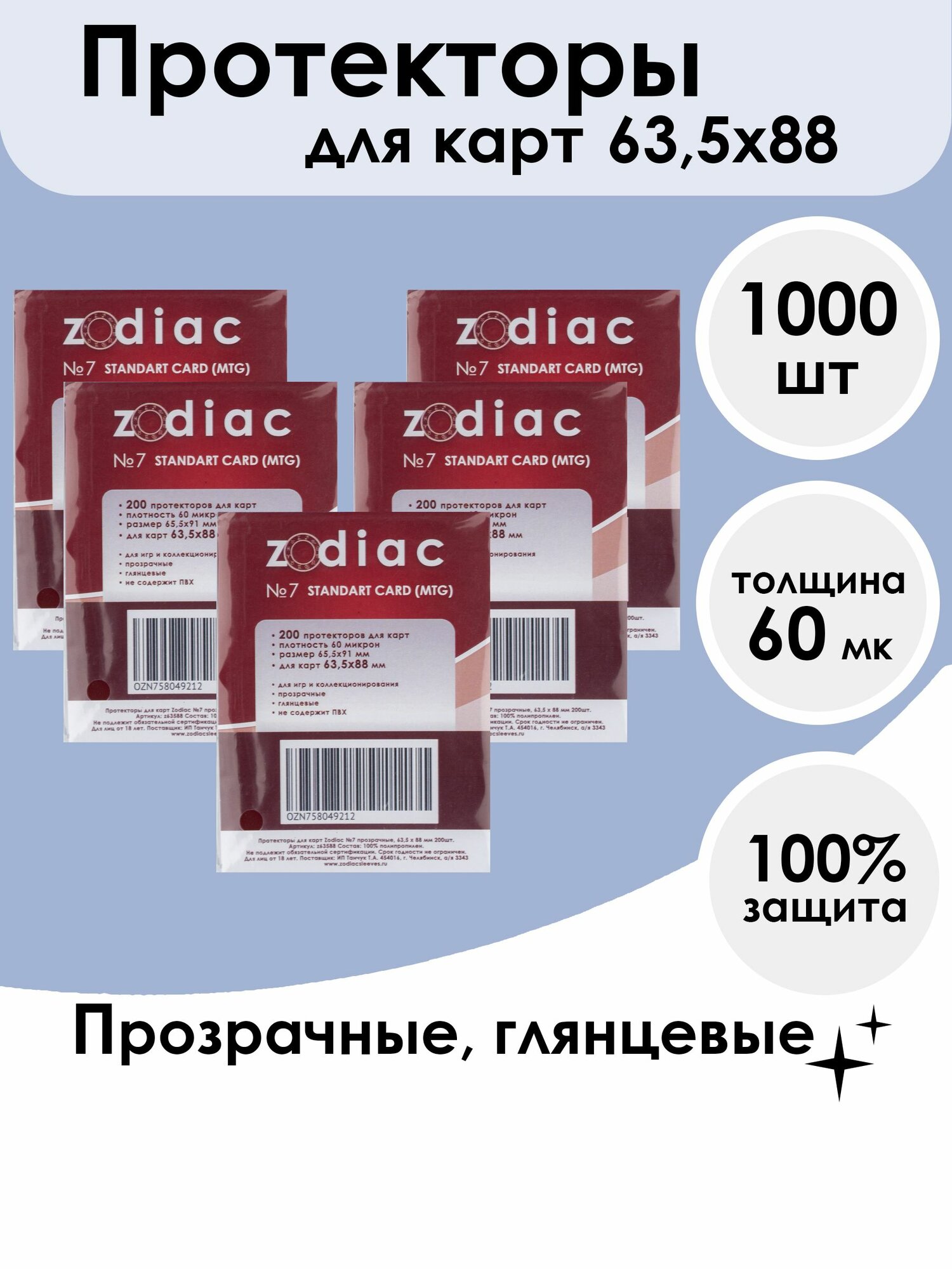 Купить Протекторы для карт прозрачные Zodiac №7, 63,5 x 88 мм 5 пачек по 200шт