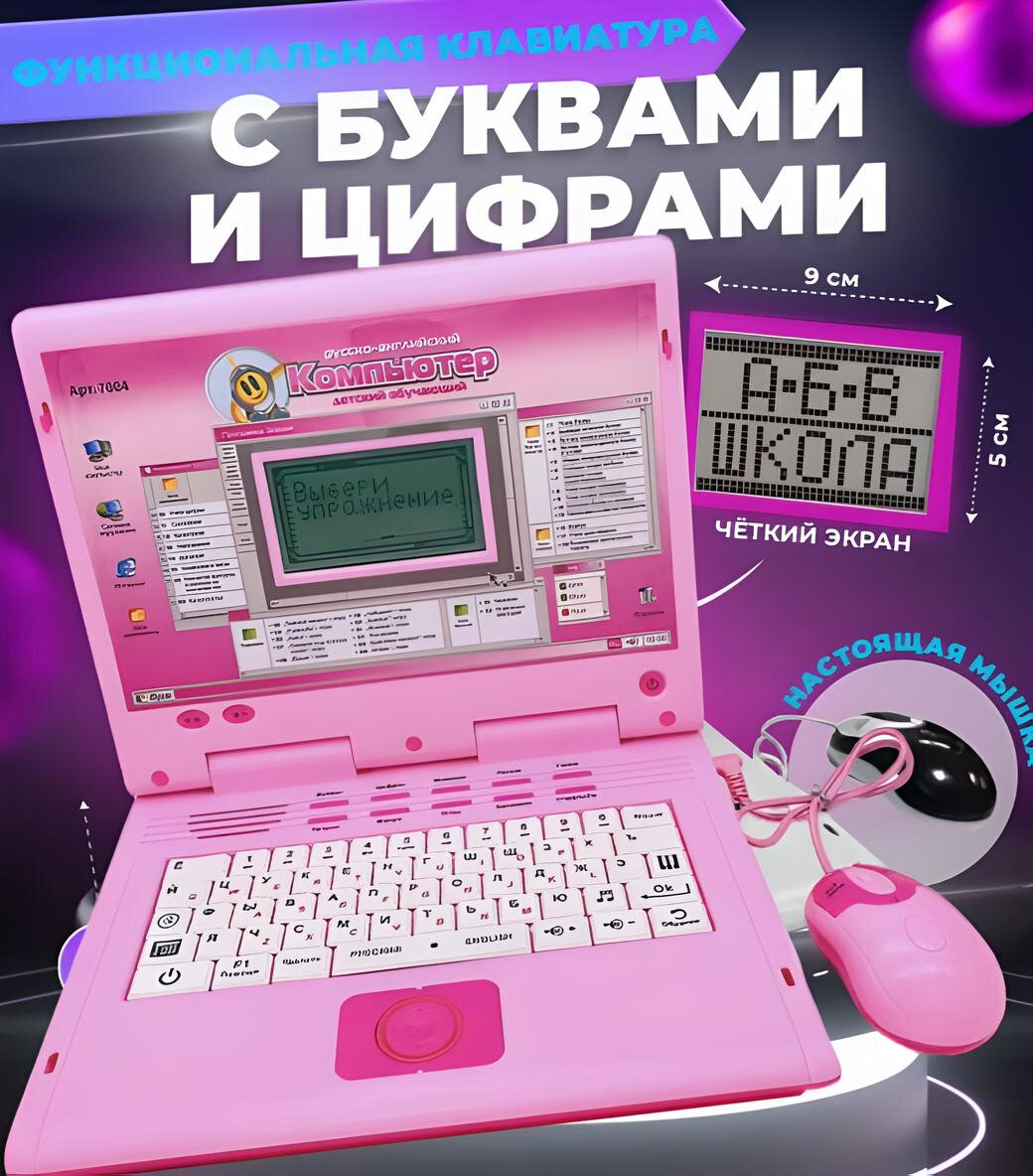 Детский компьютер, обучающая игрушка ноутбук, подарок для девочке, розовый цвет интересное: