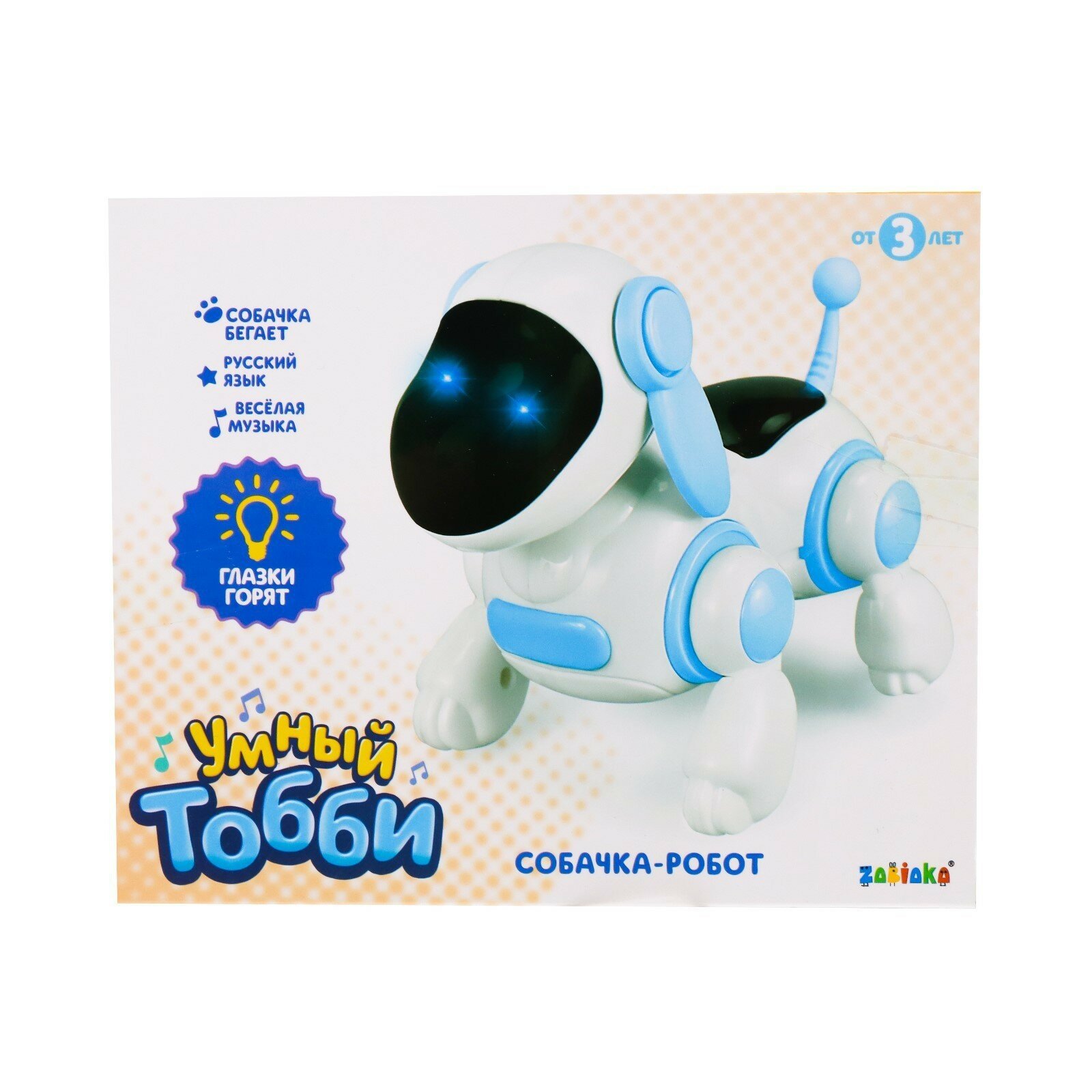 Ниже Вы можете прочитать отзывы на Собачка-робот игрушечная "Умный Тобби" двигающаяся, ходит и бегает, со световыми и звуковыми эффектами, работает от батареек, цвет голубой, ознакомится с подробными характеристиками, посмотреть интересные обзоры и фотографии на Собачка-робот игрушечная "Умный Тобби" двигающаяся, ходит и бегает, со световыми и звуковыми эффектами, работает от батареек, цвет голубой.