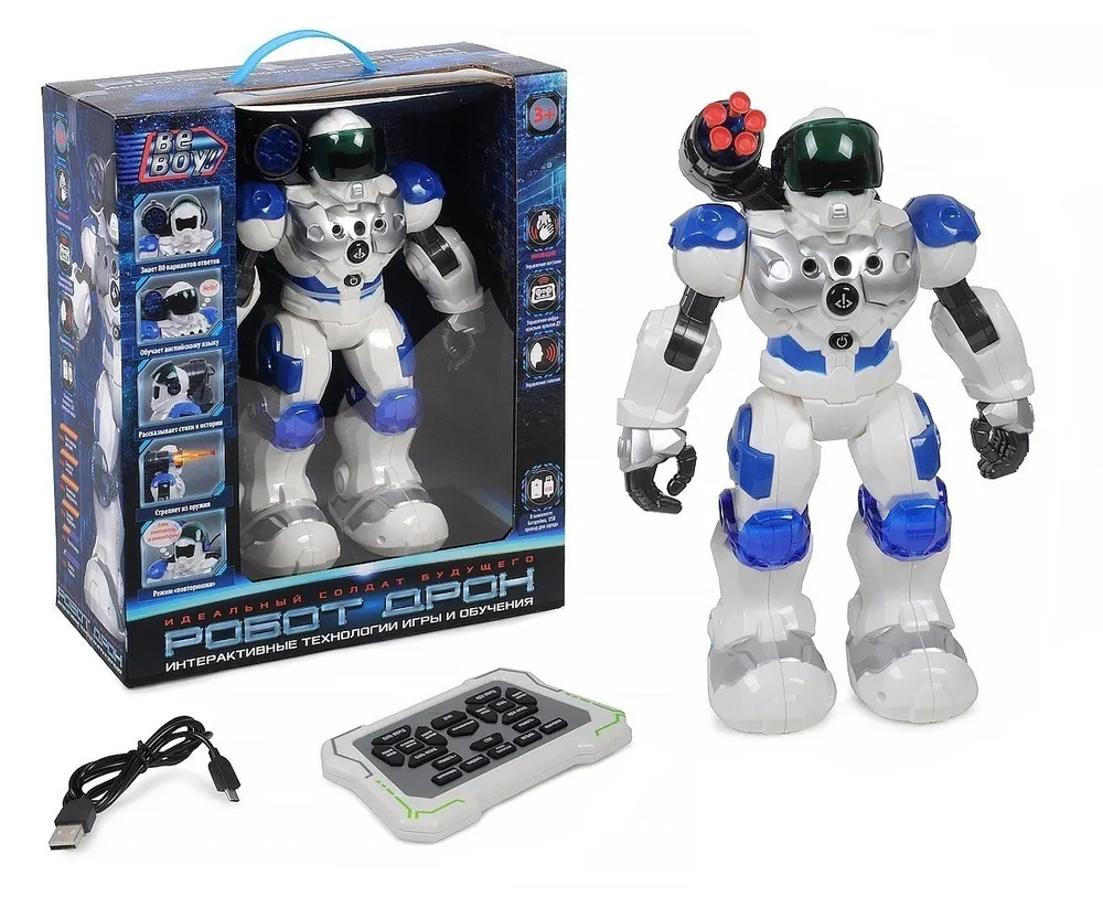 Интерактивный робот BeBoy "Дрон", детская игрушка для мальчика, белый/синий, управление ИК, жестами и голосом интересное:
