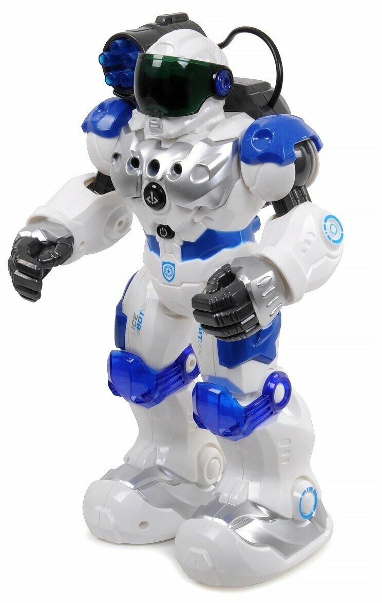 | Дополнительная информация | Управление роботом возможно 3 способами: жестами, голосом и инфракрасным пультом дистанционного управления. Робот знает 80 вариантов ответов, обучает английскому языку, рассказывает стихи и истории, понимает 20 голосовых команд. Стреляет из оружия. Режим «Повторюшки». Программирование действий робота. Двигается и танцует, подвижные руки, подвижные элементы. Звуковые и световые эффекты. Разные уровни громкости. |