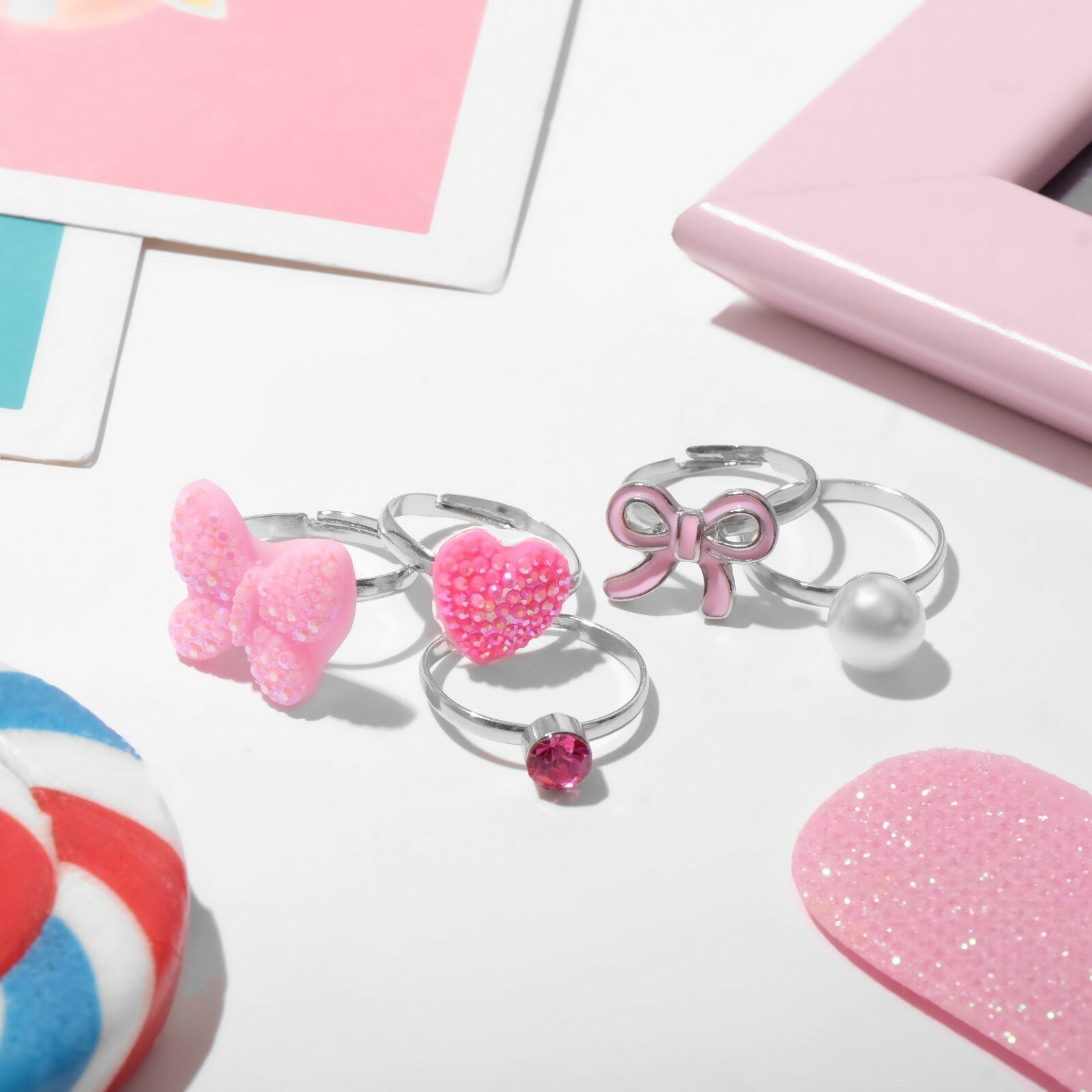 Набор детских колец "Выбражулька Нежность", бижутерия для девочек, комплект украшений из 5 колечек, аксессуары форма микс интересное: