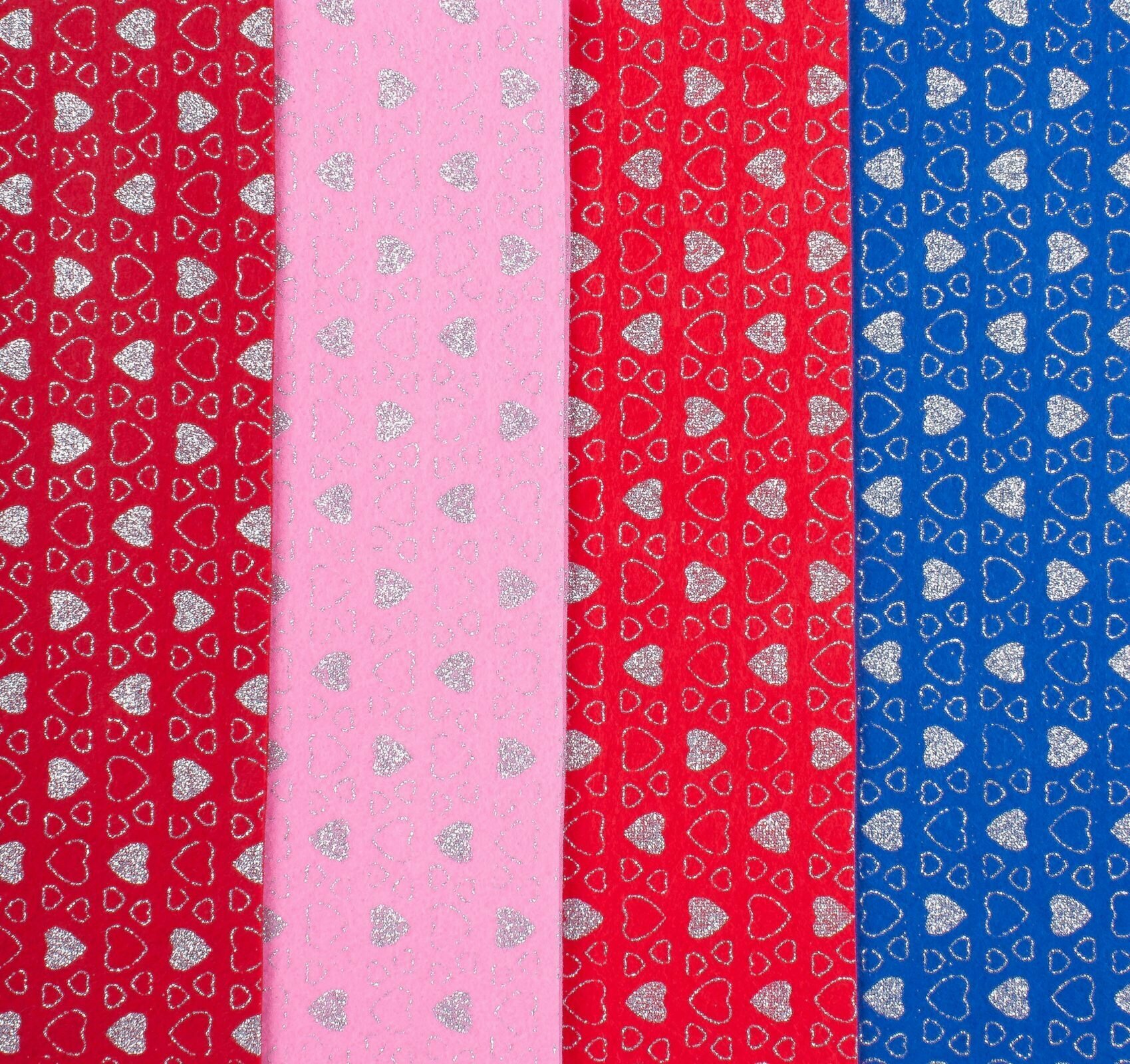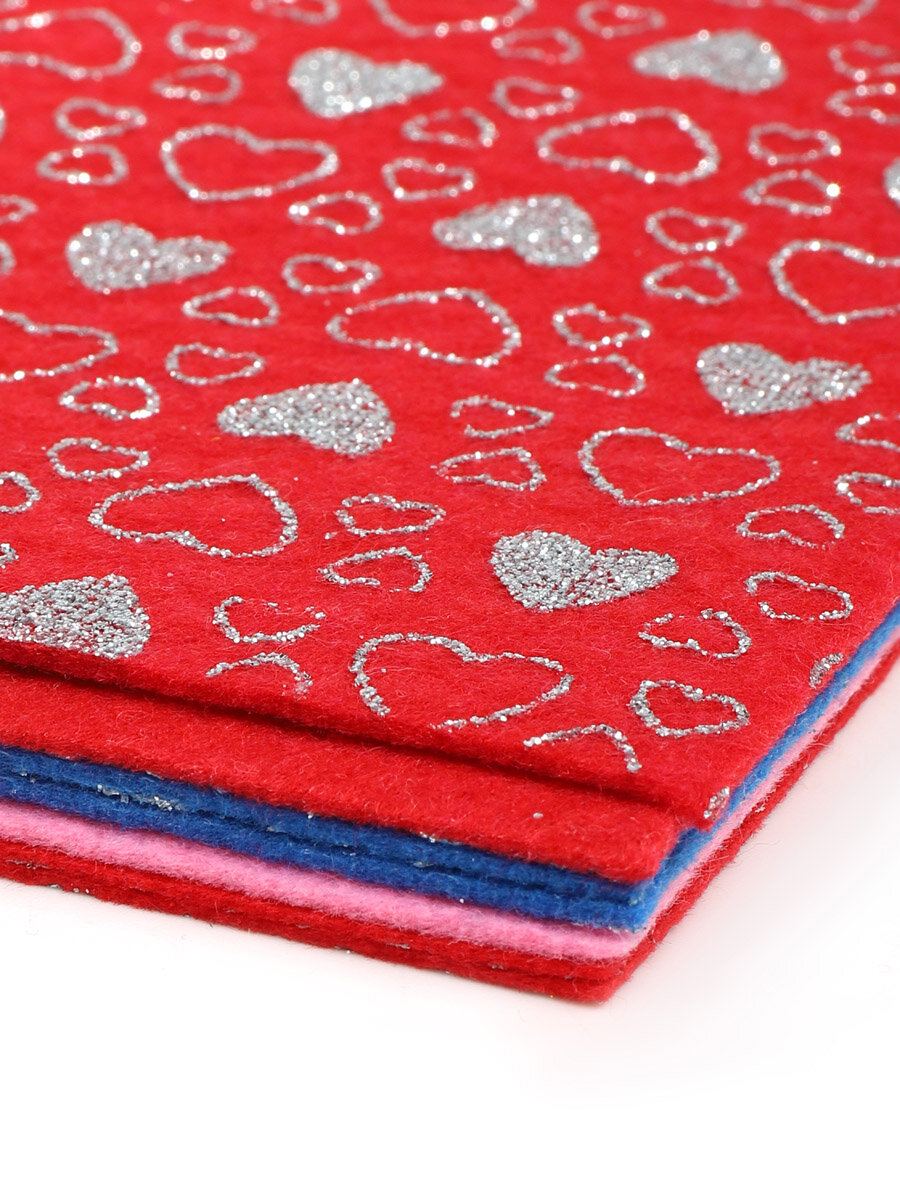 Купить Фетр с глиттером для рукоделия Сердечки IDEAL 1,4мм 20х30см арт.FLT-GLP3 уп.8 листов цв.ассорти