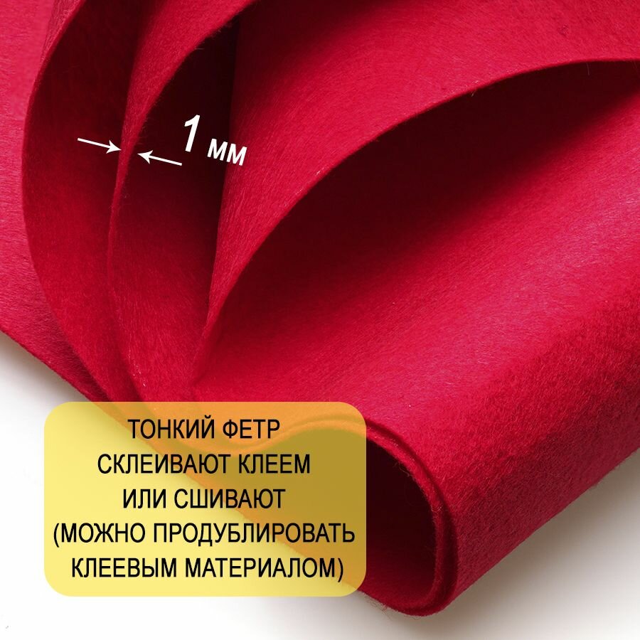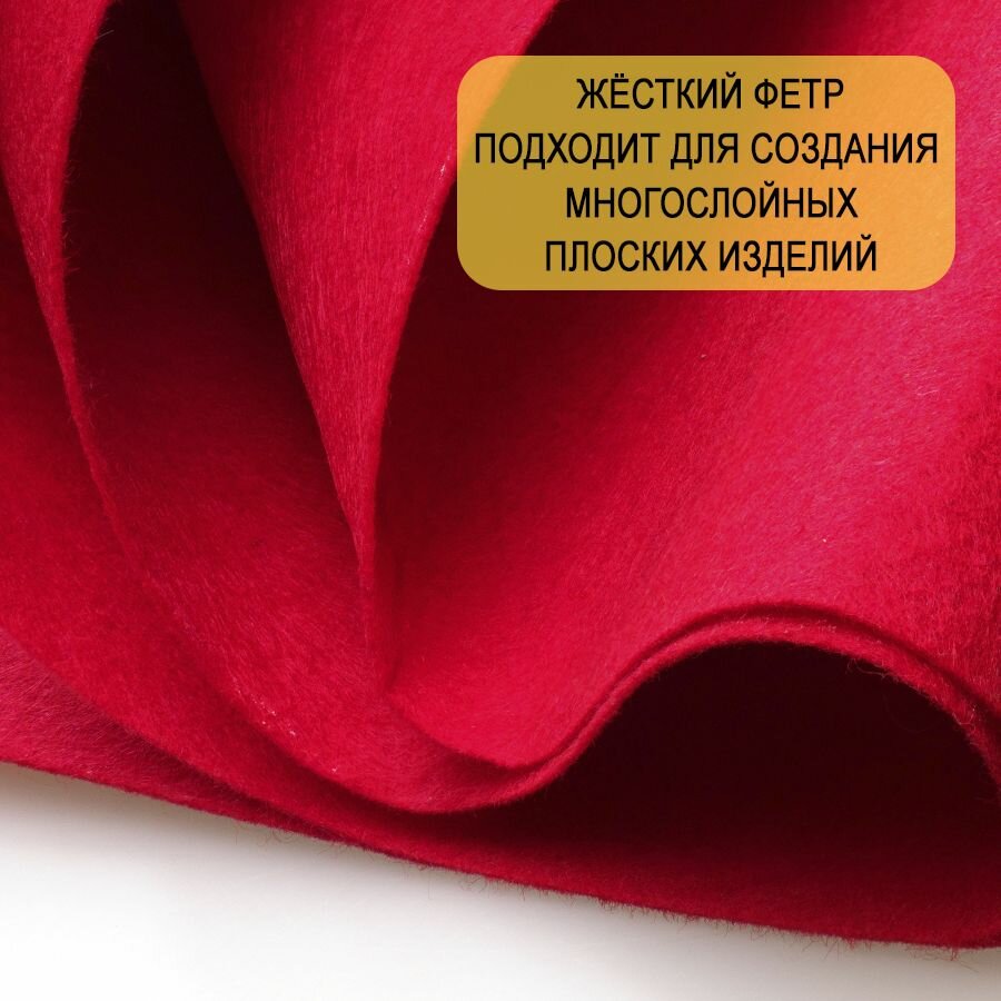 СохранитьФетр однотонный твердый 1 мм в рулоне 100 х 100 см, красный С02, плотность 160г/м2 интересное: