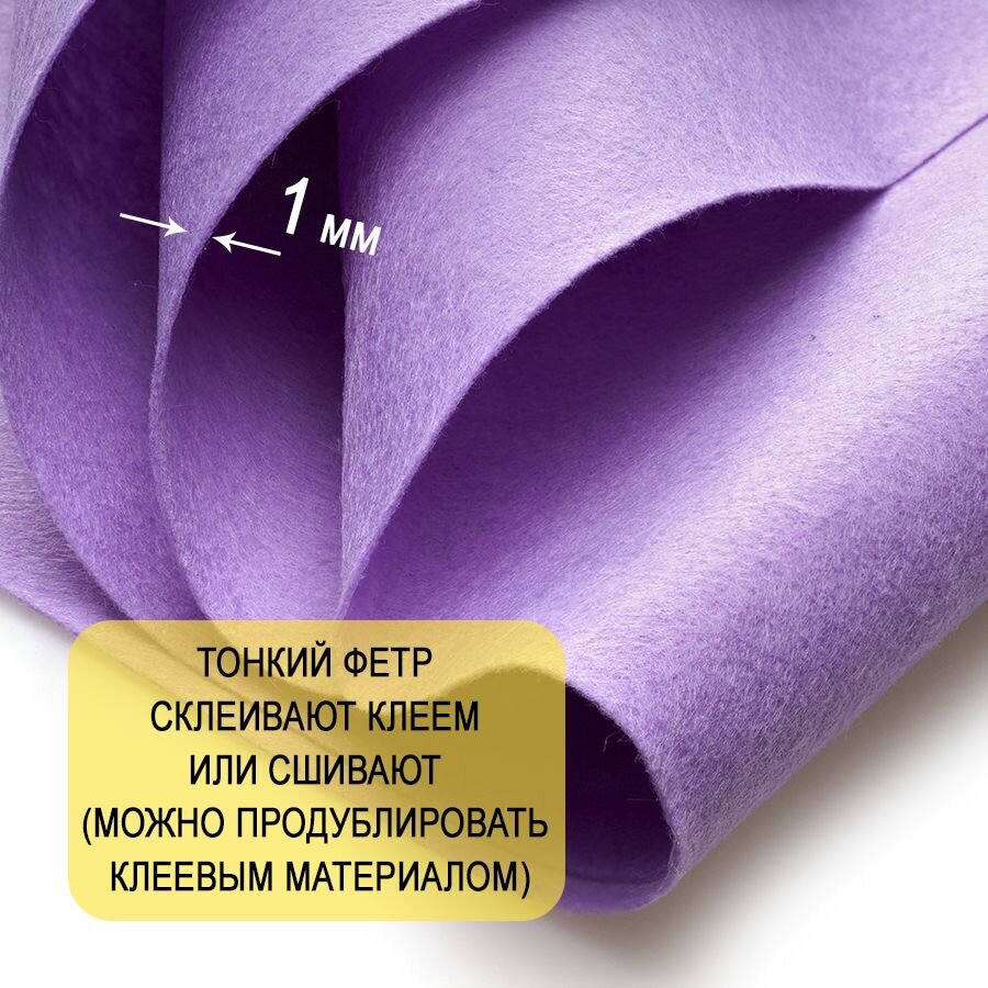 СохранитьФетр однотонный твердый 1 мм в рулоне 100 х 100 см, сиреневый С71, плотность 160г/м2 интересное: