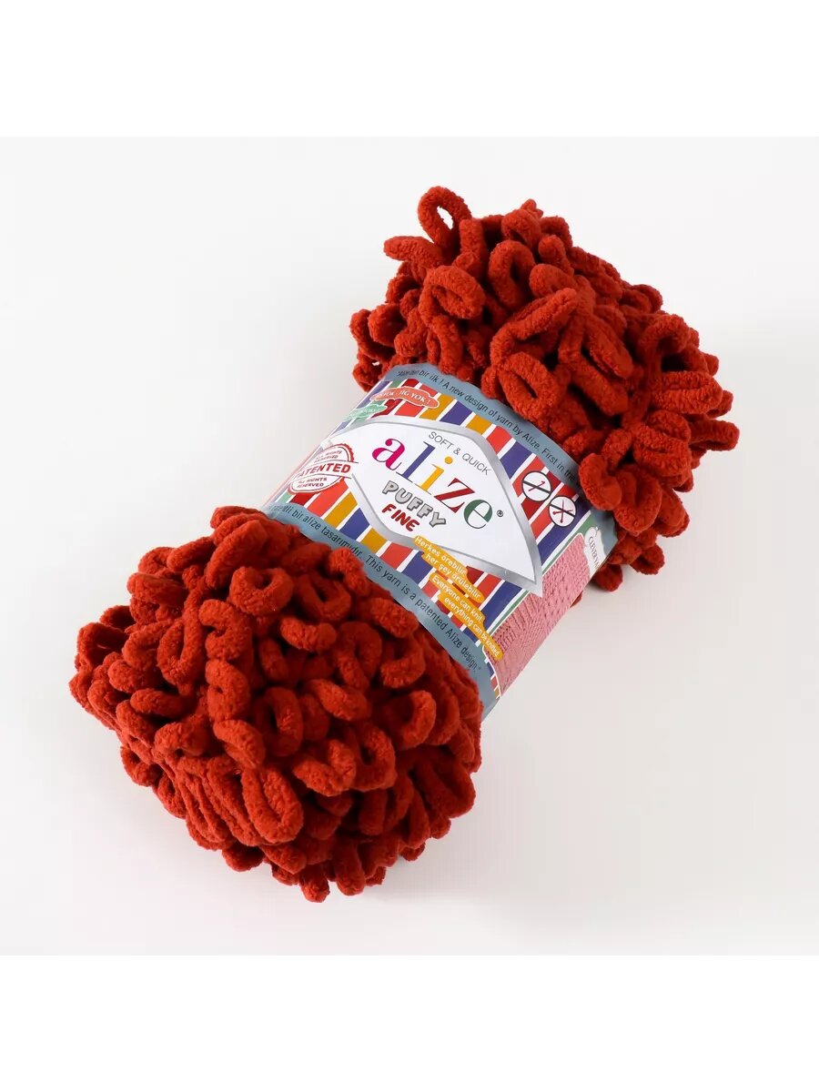 Пряжа для вязания руками с готовыми петлями ALIZE 'Puffy Fine' 100г, 14,5м (90 терракот), 5 мотков