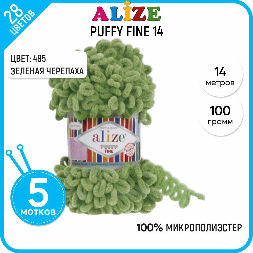 Купить Пряжа для вязания руками с готовыми петлями ALIZE 'Puffy Fine' 100г, 14,5м (485 зеленая черепаха), 5 мотков