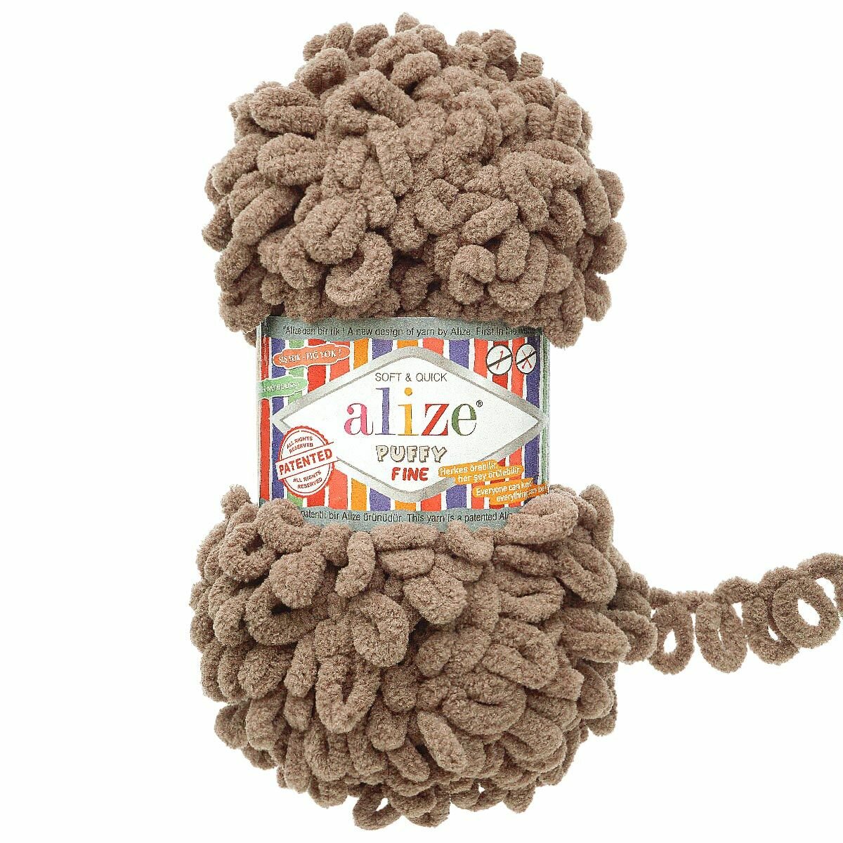 Пряжа для вязания руками с готовыми петлями ALIZE 'Puffy Fine' 100г, 14,5м (261 светло-коричневый), 5 мотков