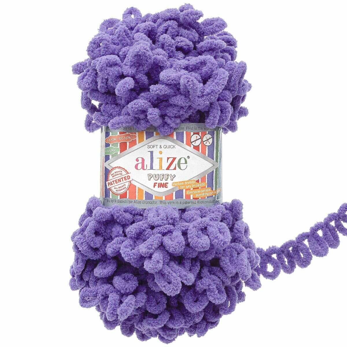 Пряжа для вязания руками с готовыми петлями ALIZE 'Puffy Fine' 100г, 14,5м (851 сиреневый), 5 мотков