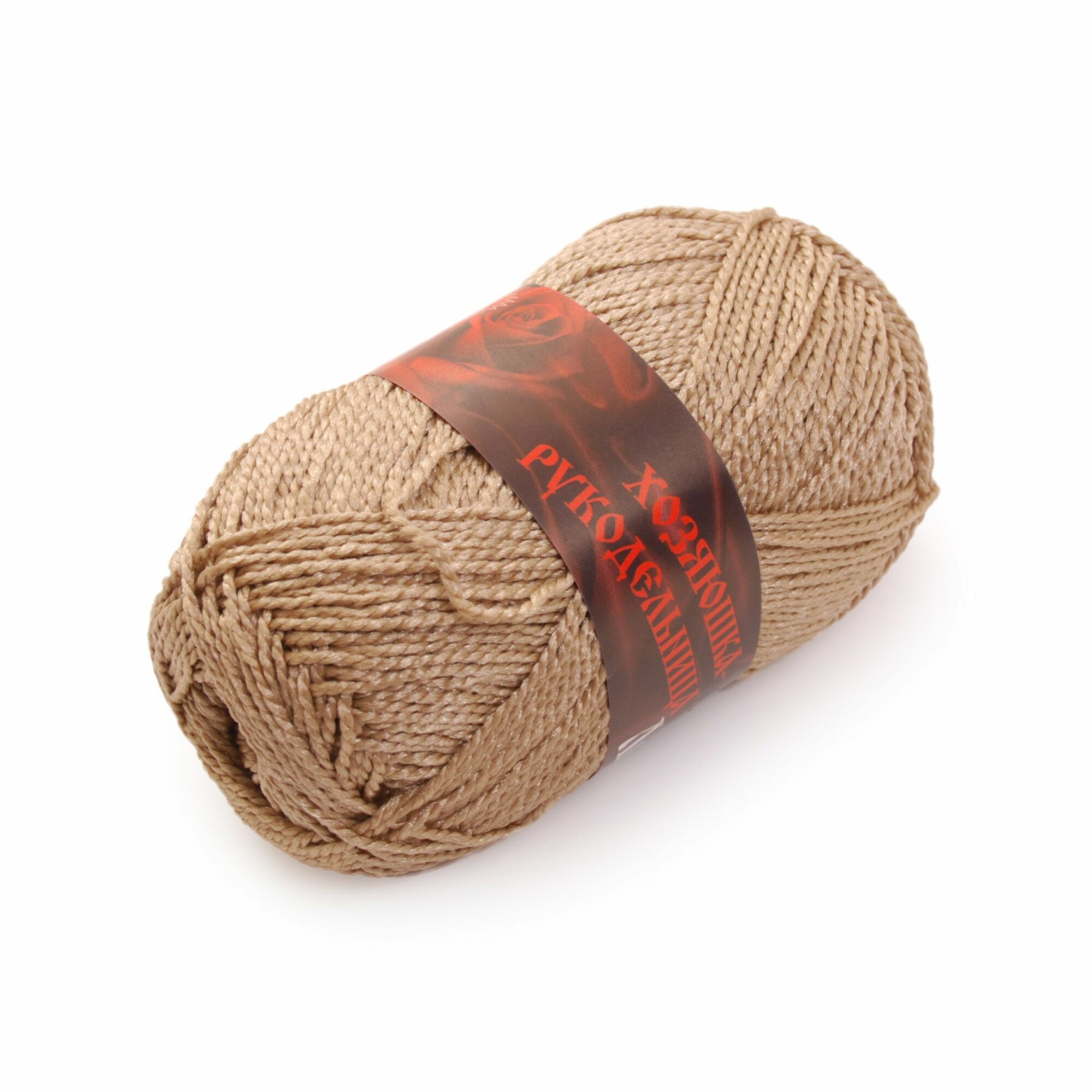Пряжа Хозяюшка-рукодельница Люкс, 50 г/140м, дуэт №8 5+5 шт бежевый/т. жемчуг + крючок №3.5
