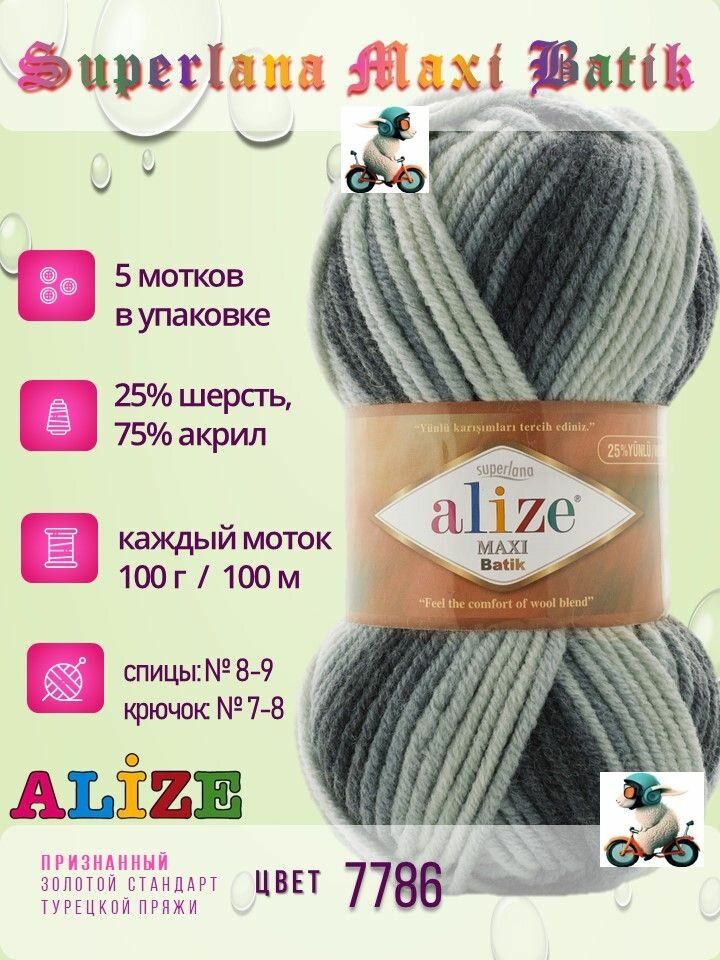 Пряжа Alize Superlana Maxi Batik 7785, 100 г, 100 м, 5 штук