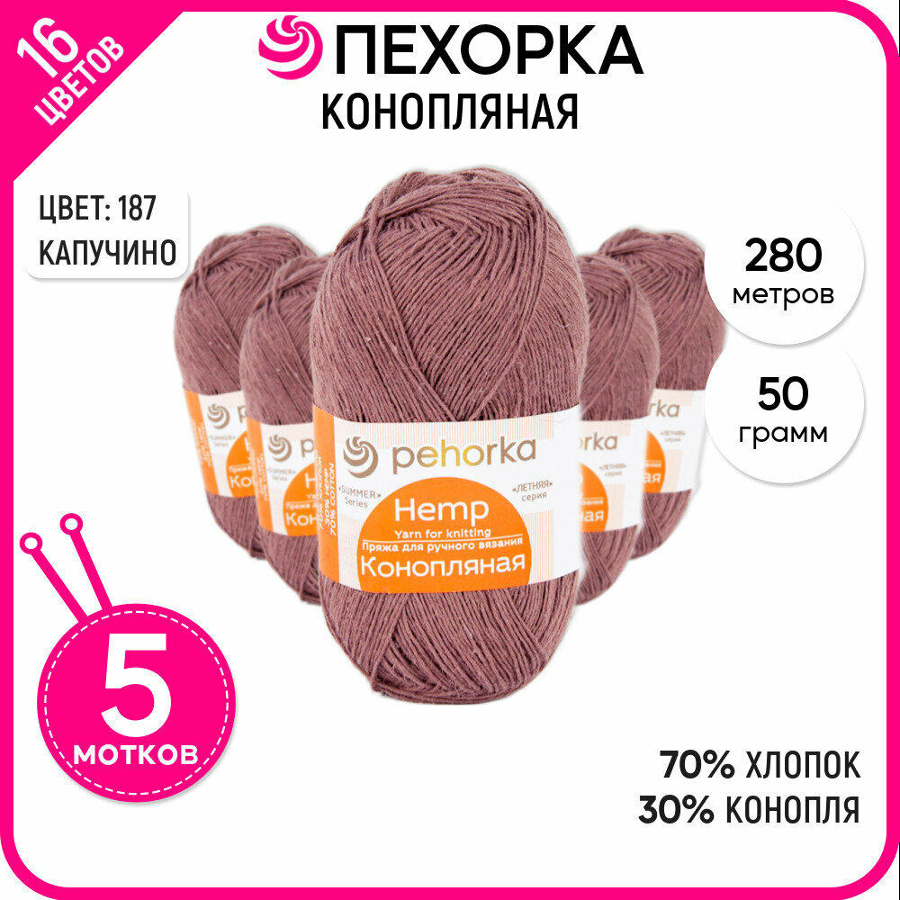 Пряжа Пехорка Конопляная капучино (187), 70%хлопок/30%конопля, 280м, 50г, 5шт